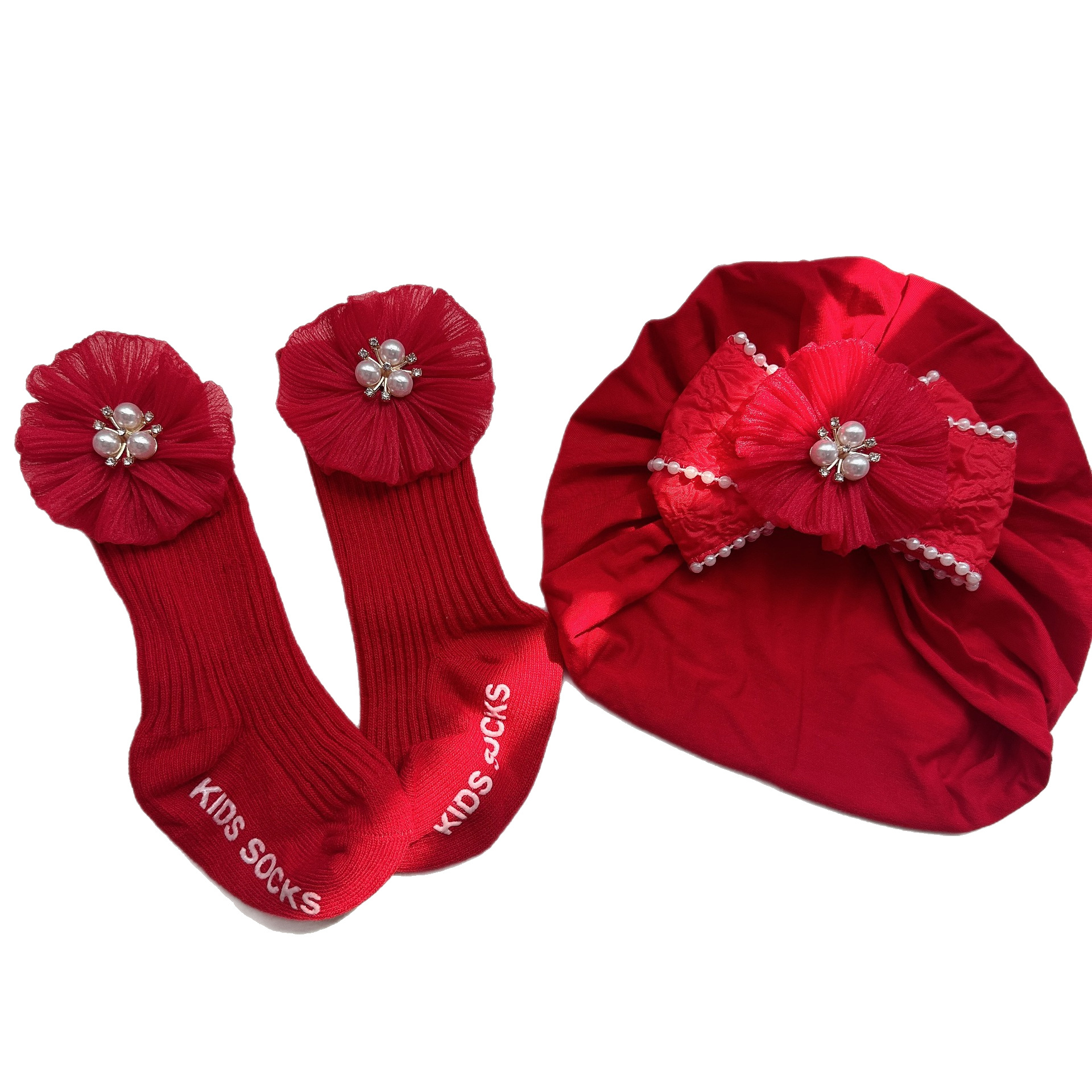118 thick double red pleated cap + long socks