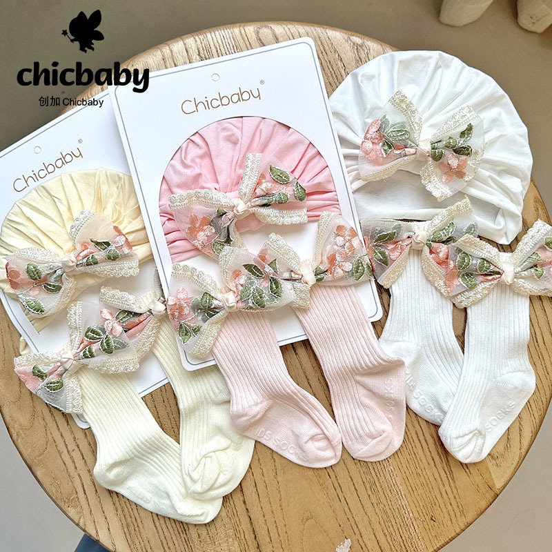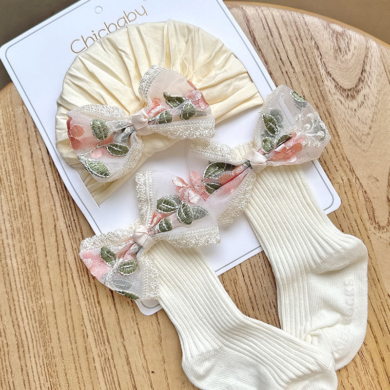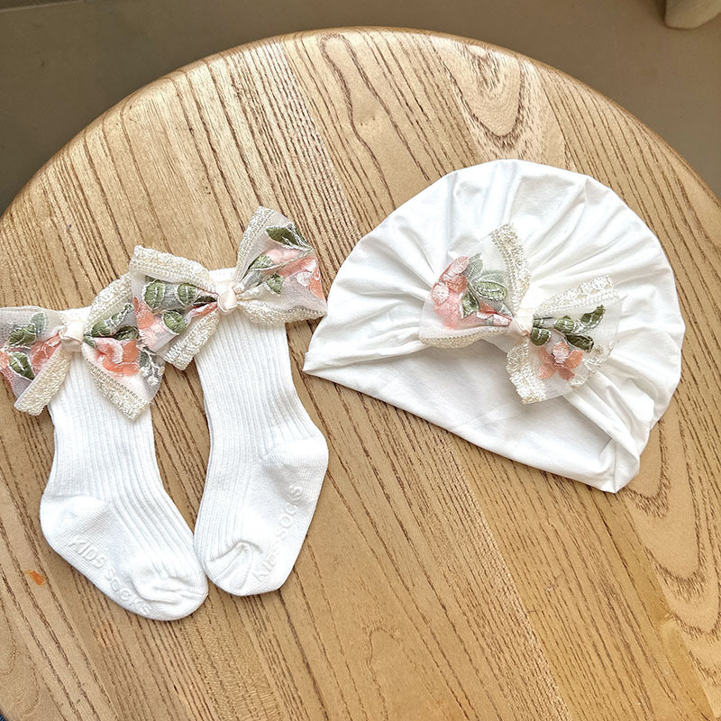 5 white brocade yarn knot cap + medium stockings