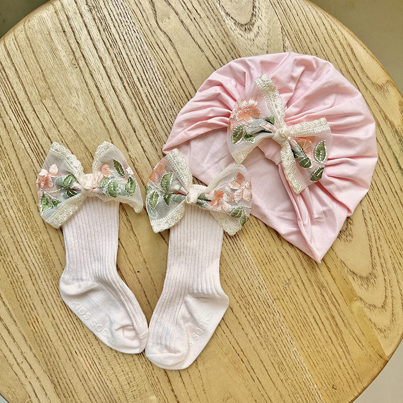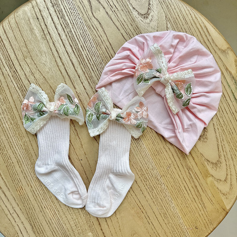 24 pink embroidery yarn knot cap + medium stockings
