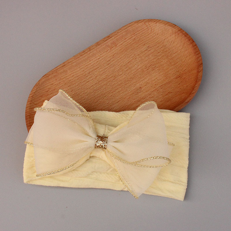 light yellow golden edge bow jacquard hair band