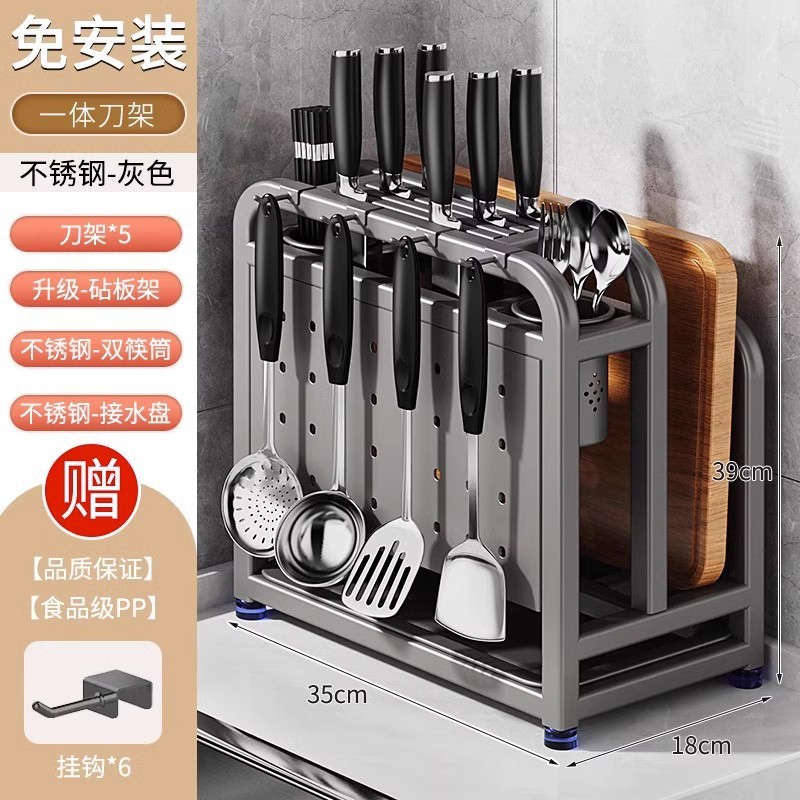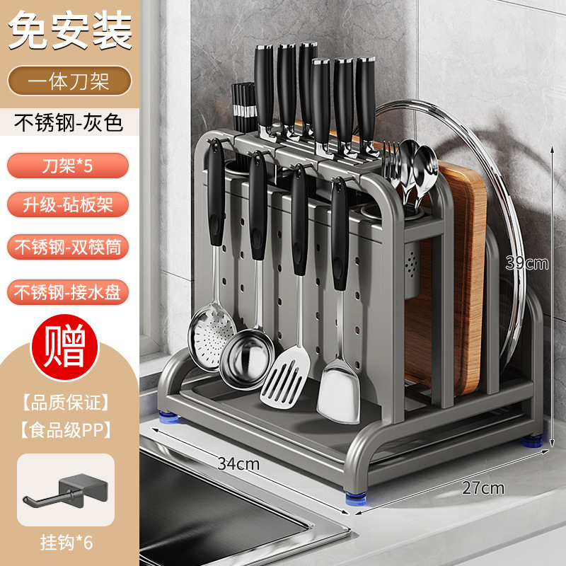 table top [201 stainless steel gun gray] protection cutting board + single chopping board rack + double chopstick canister + free pp hook * 6