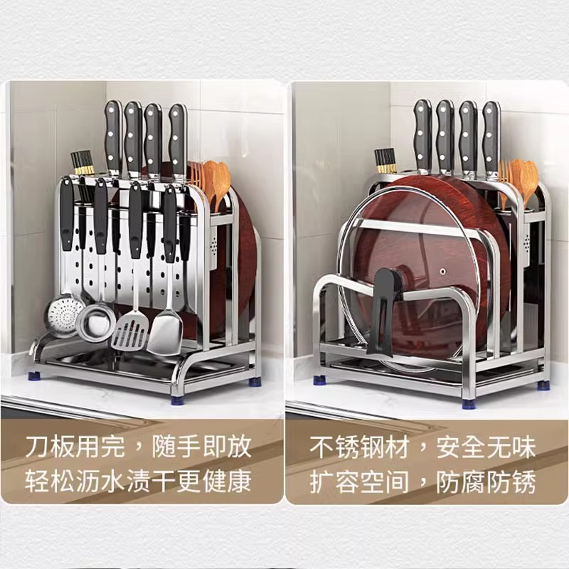 table top [201 stainless steel primary color · heightening] protection cutting board + double chopping board/pot cover rack + double chopstick canister + get stainless steel hook * 6