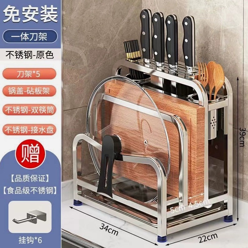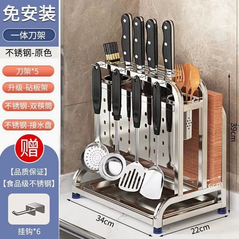 table top [201 stainless steel primary color] protection cutting board + single chopping board rack + double chopstick canister + free stainless steel hook * 6