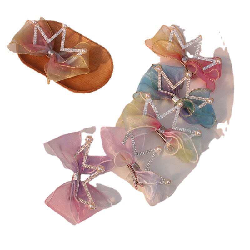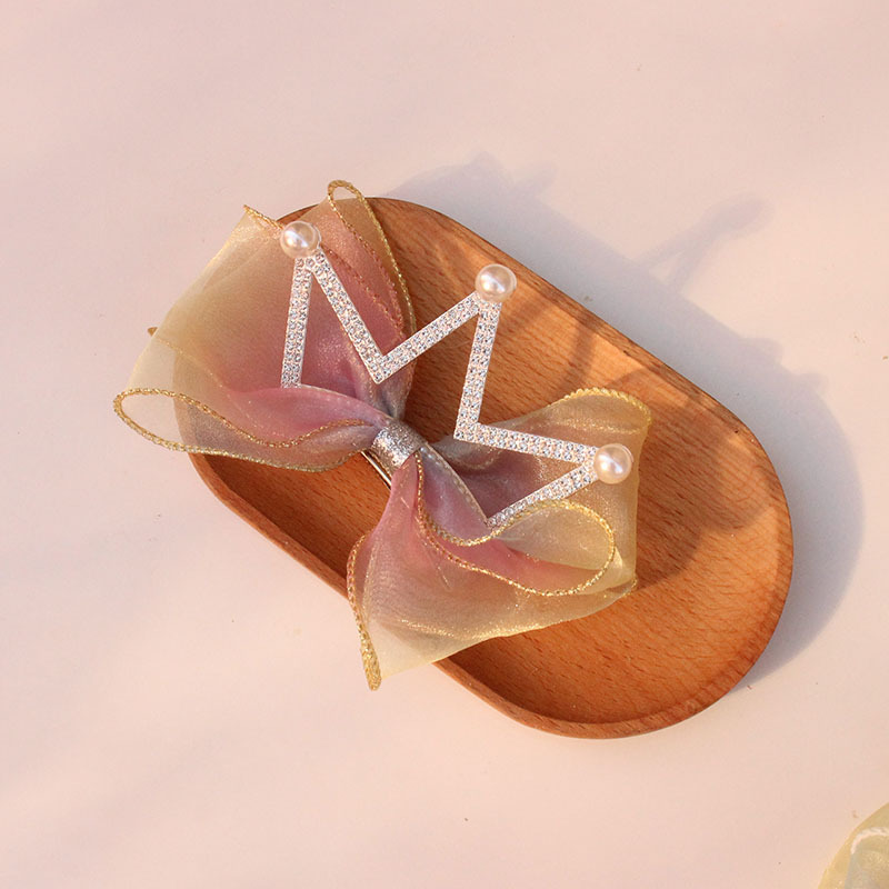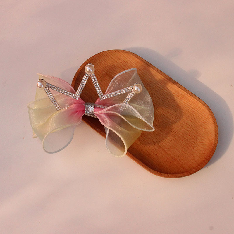 yellow and pink rainbow pearl big crown barrettes (phnom penh