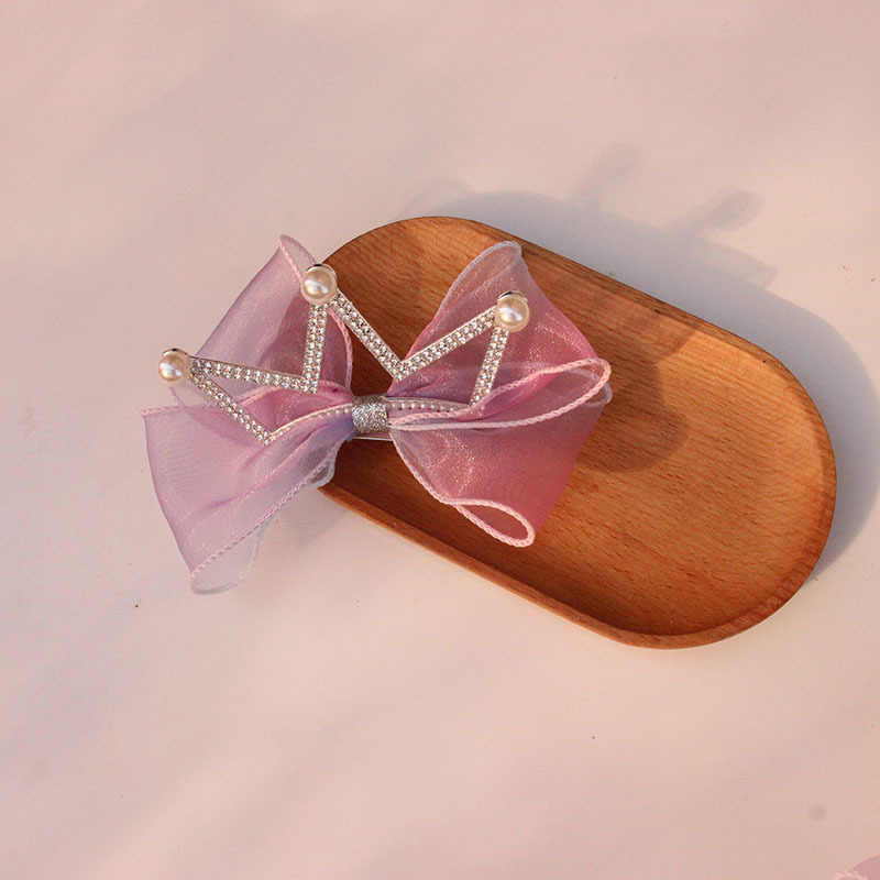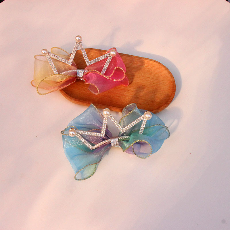 baby pink rainbow pearl big crown barrettes (phnom penh