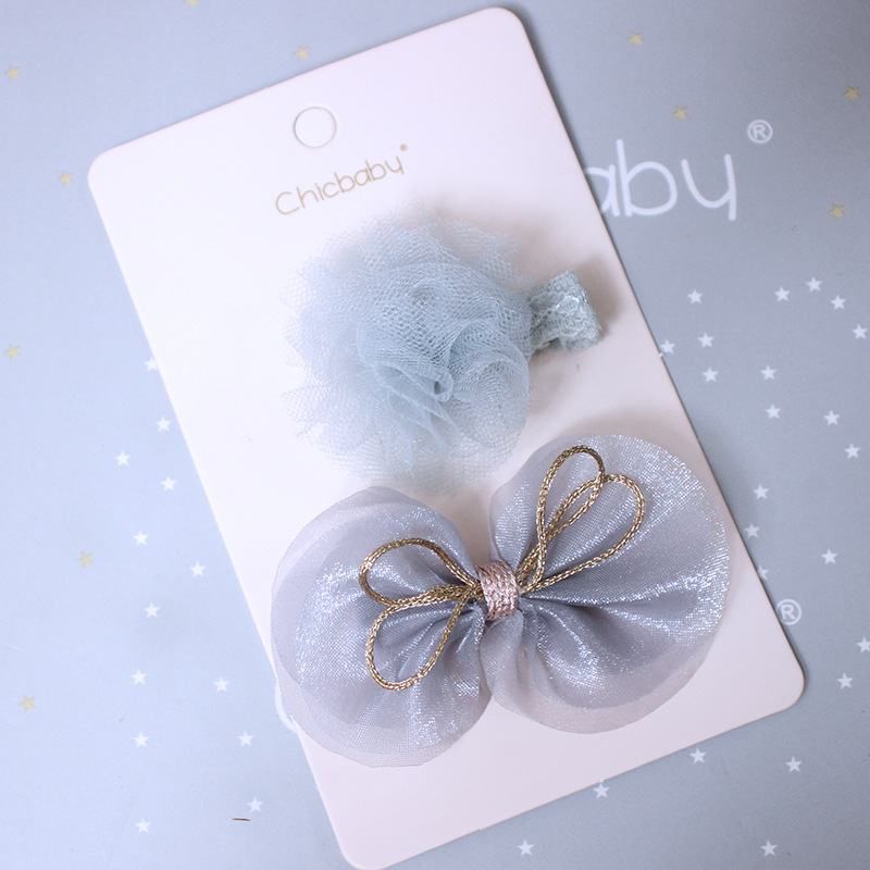 gray and blue yarn ball set of barrettes