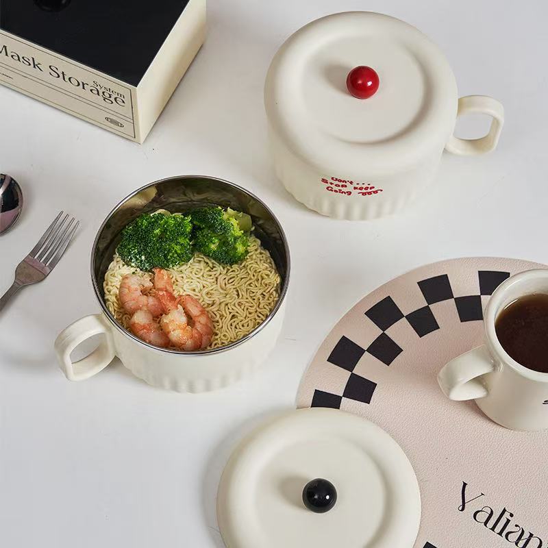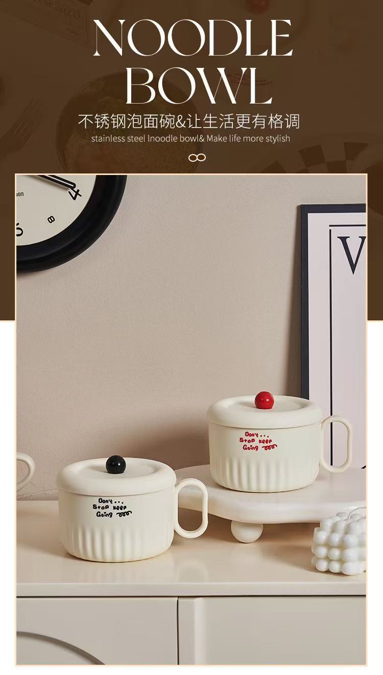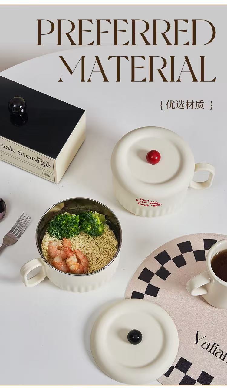 ins style student dormitory 304 stainless steel canteen cooking insulation with lid instant noodle bowl drain instant noodle bowl