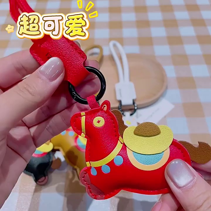 original soon rich leather key chain chinese zodiac horse pendant pony ornaments new year small gift doll wholesale