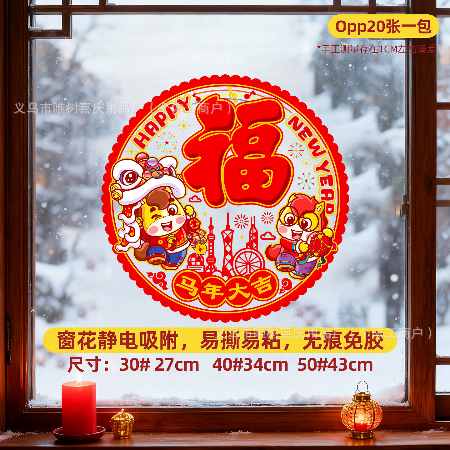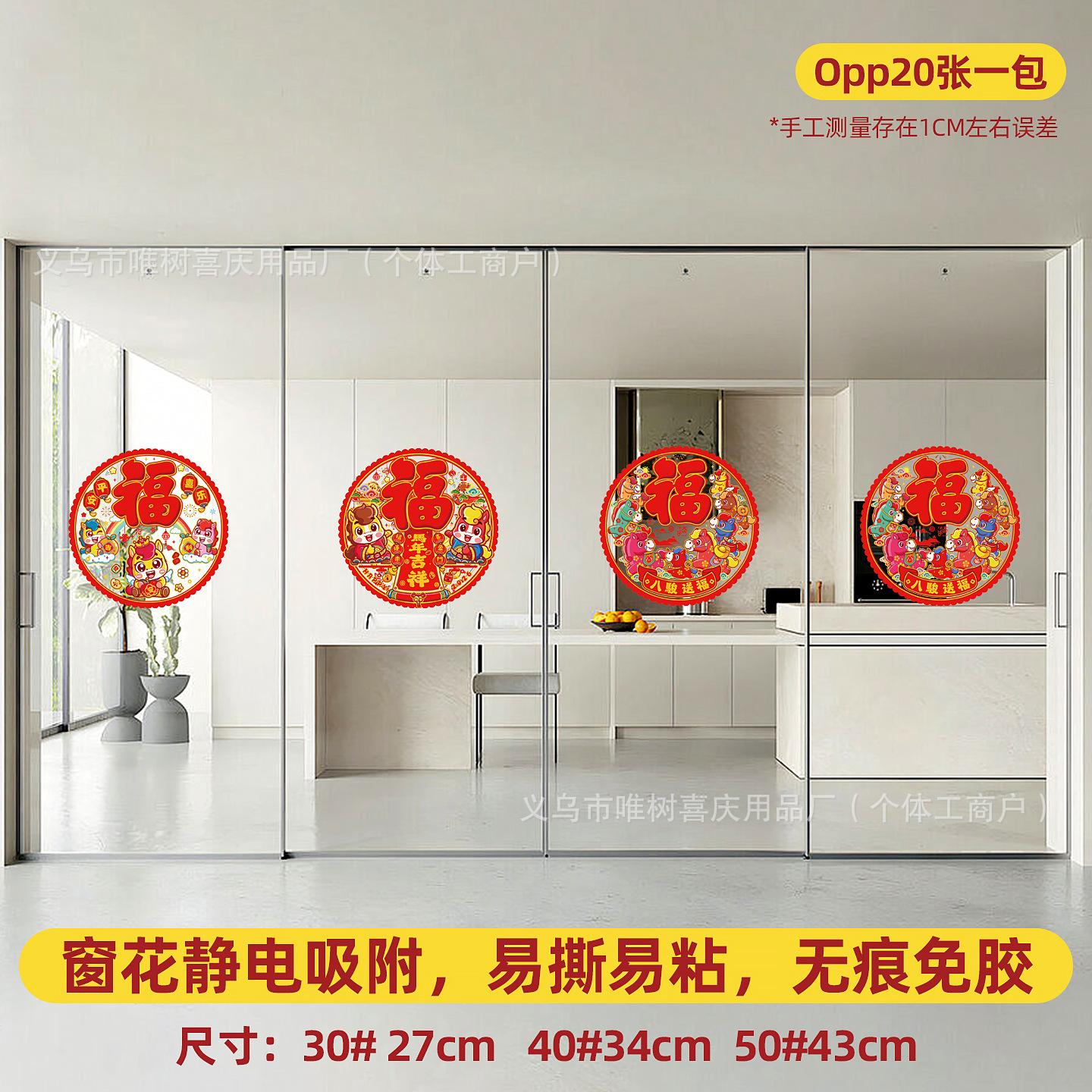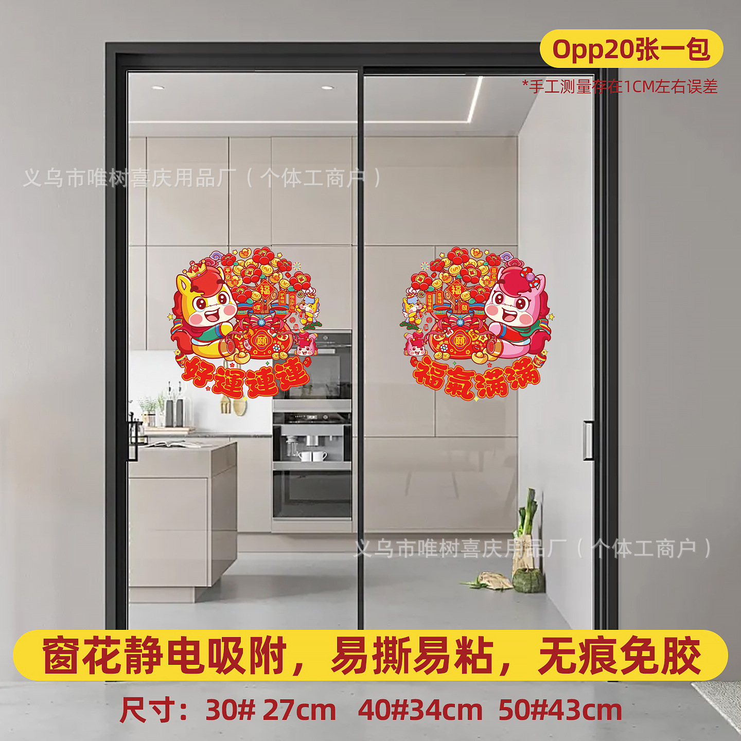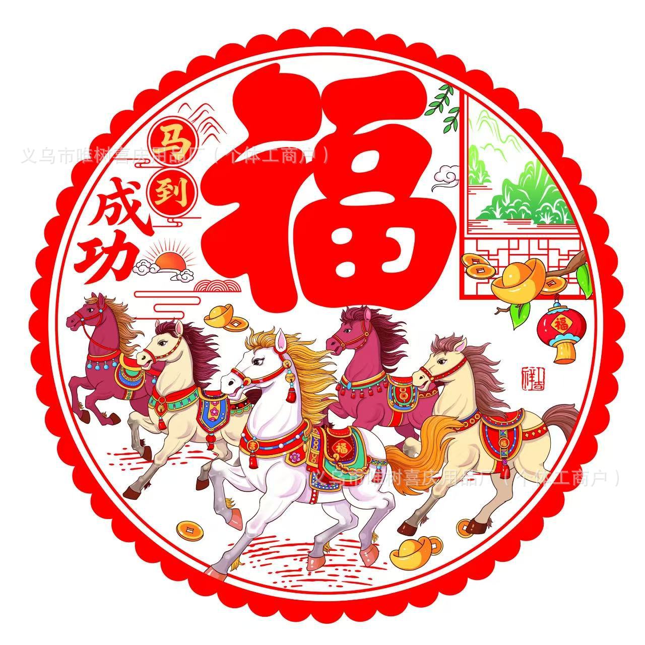(the style is randomly sent in multiple of 20) color chinese zodiac horse 30# static sticker window flower