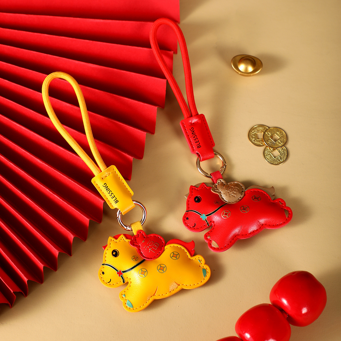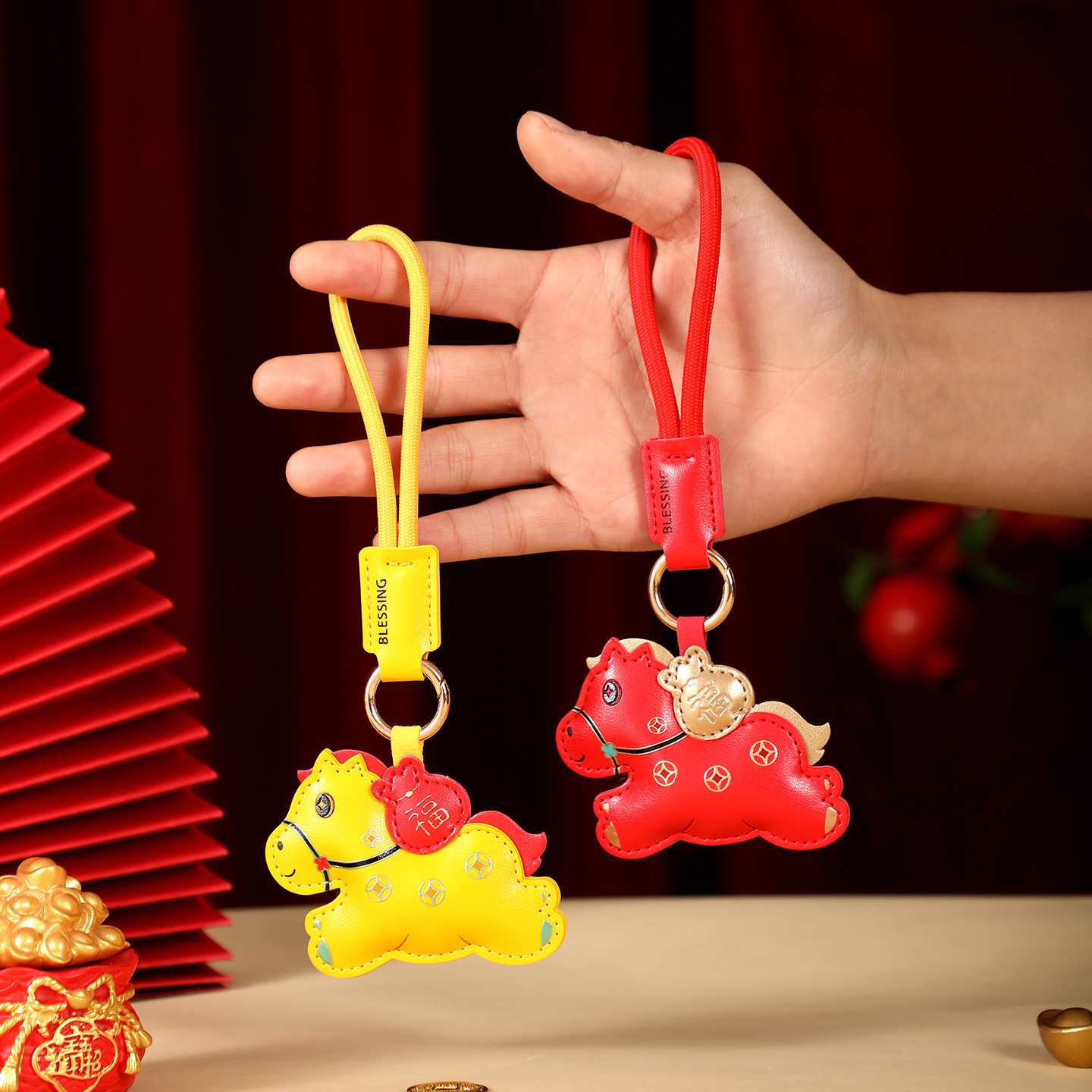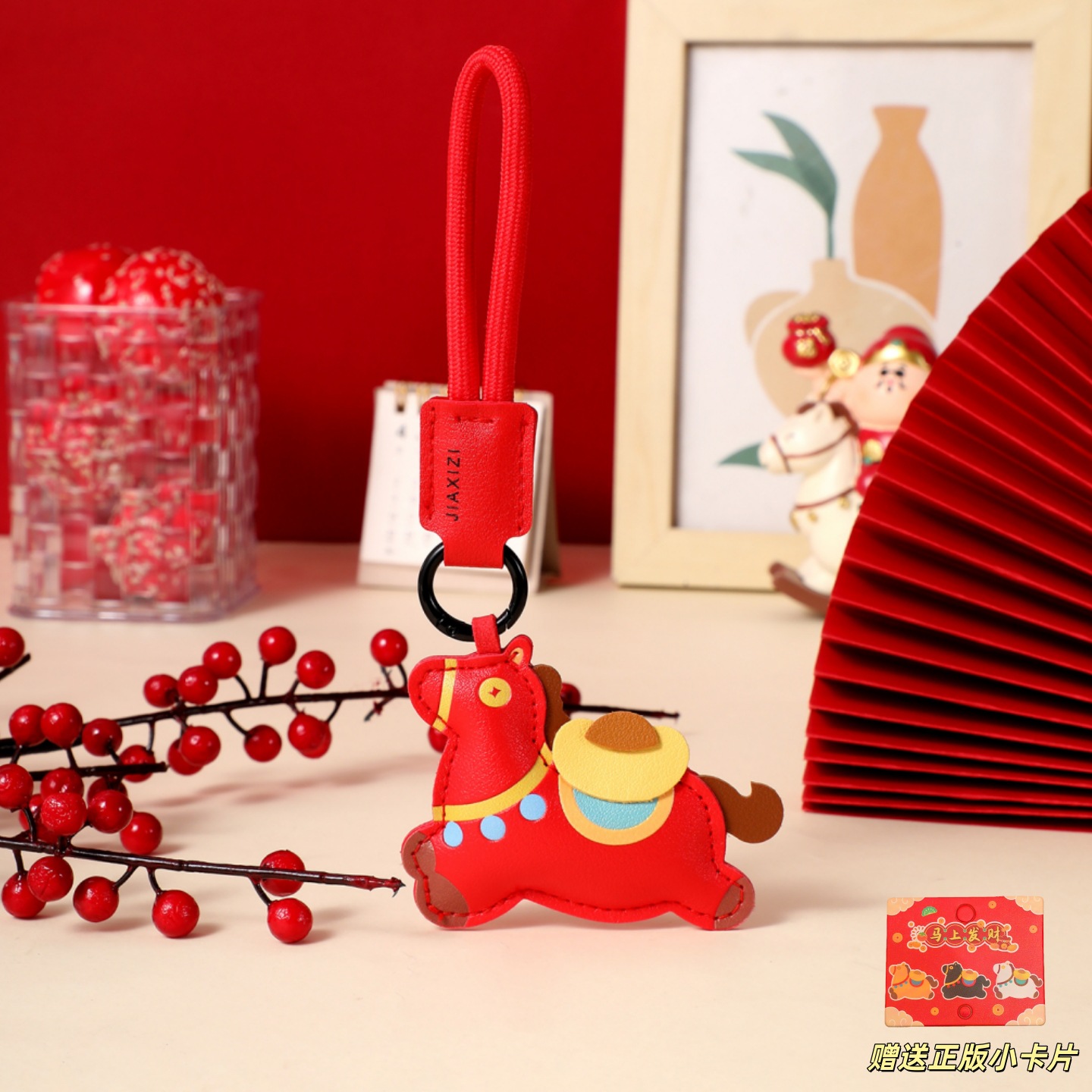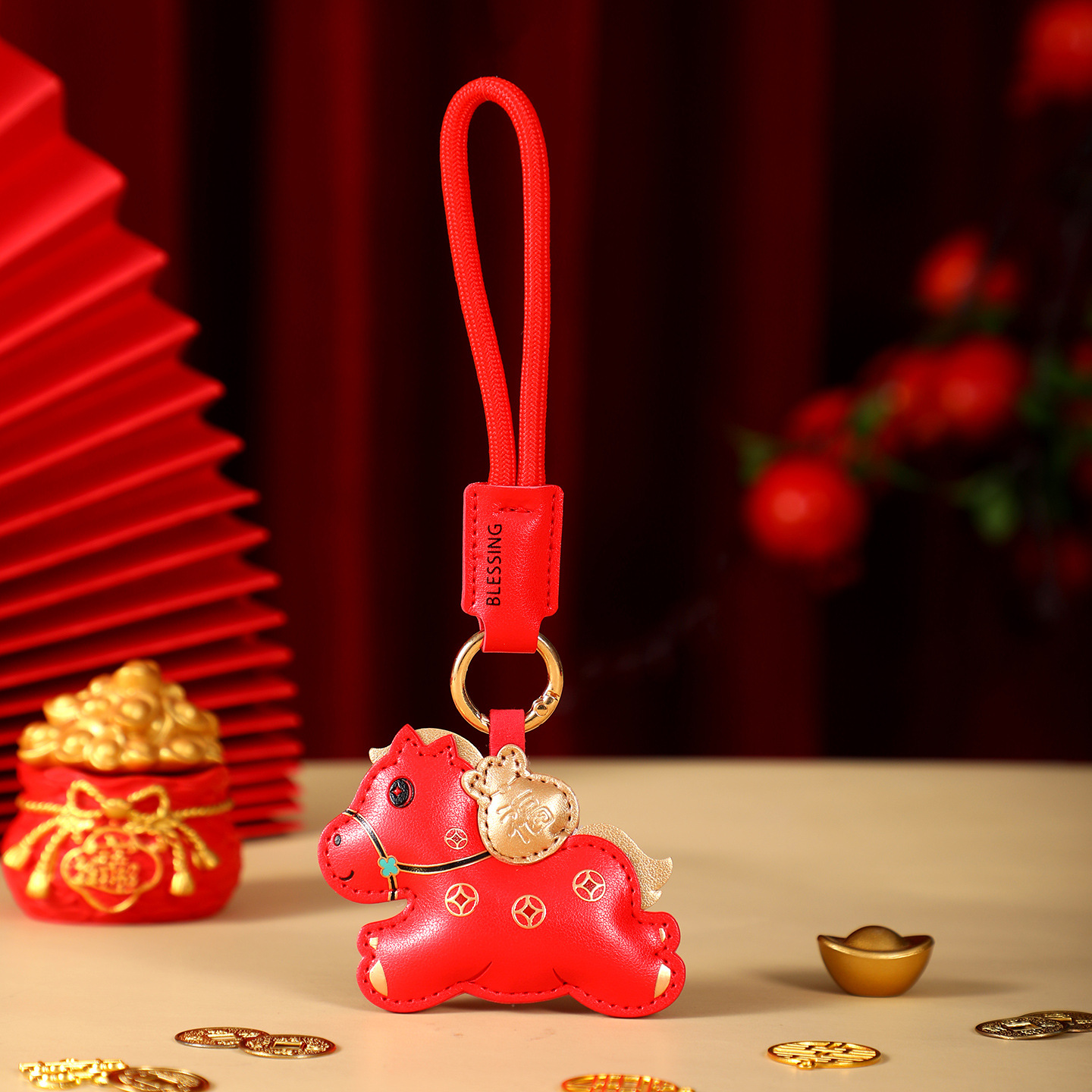 leather lucky bag horse-red