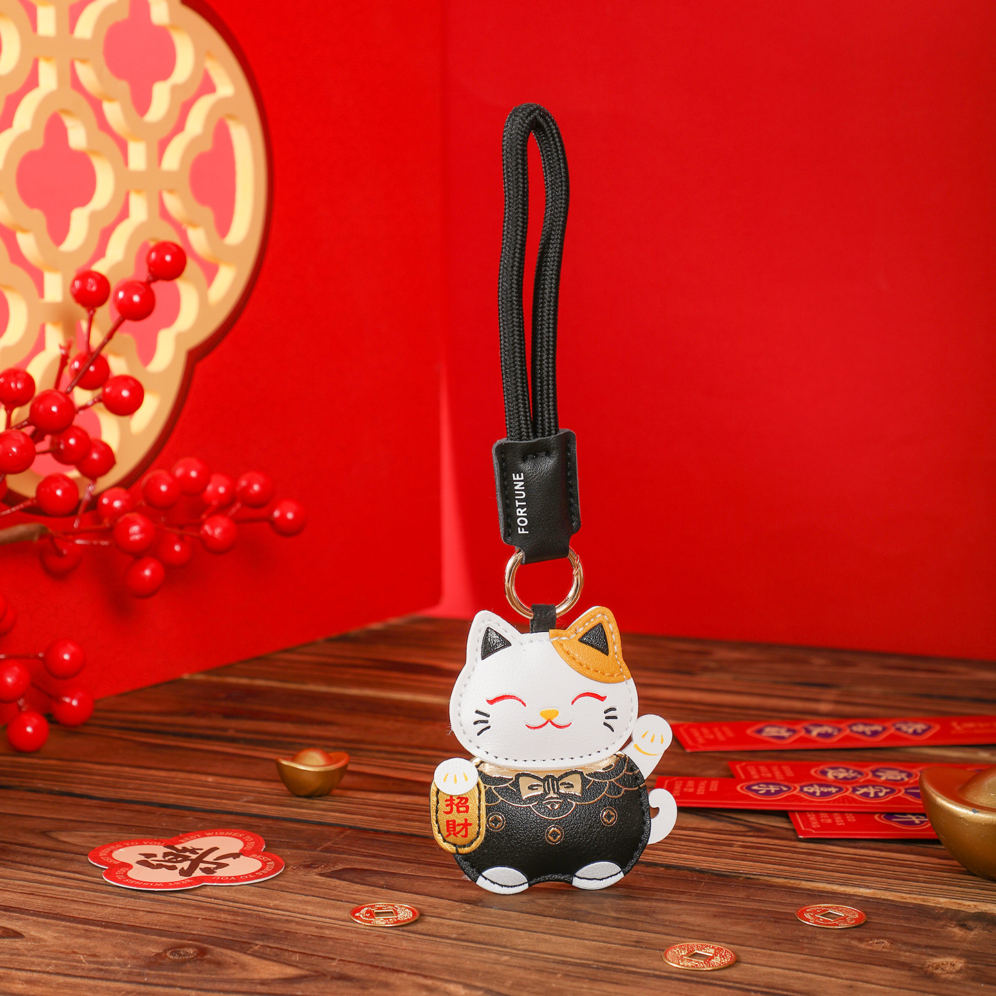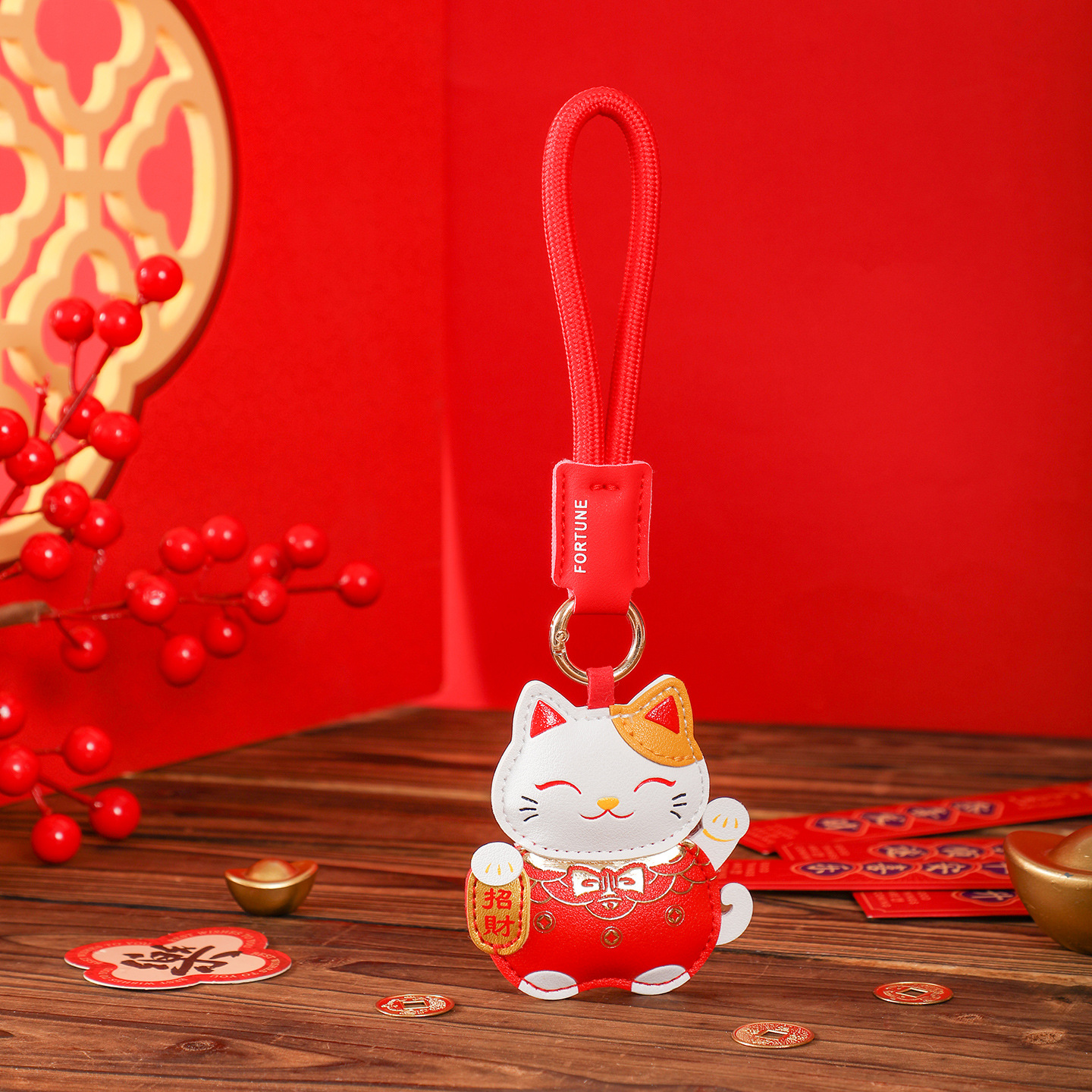 leather lucky cat-red