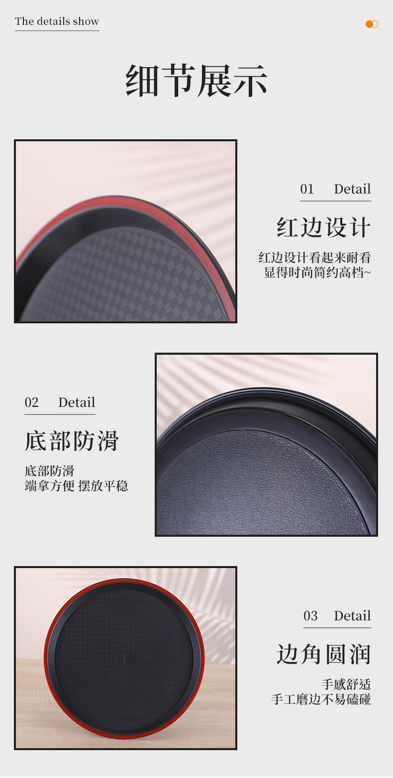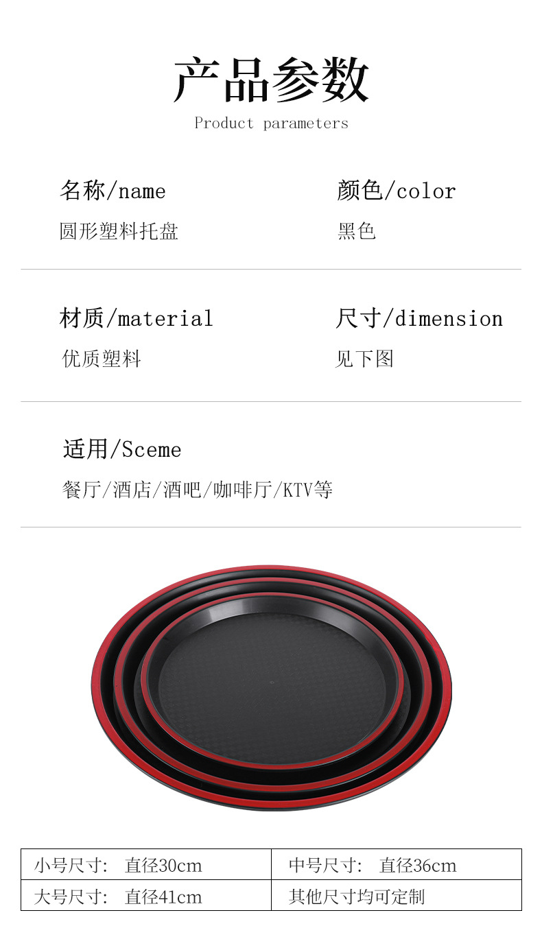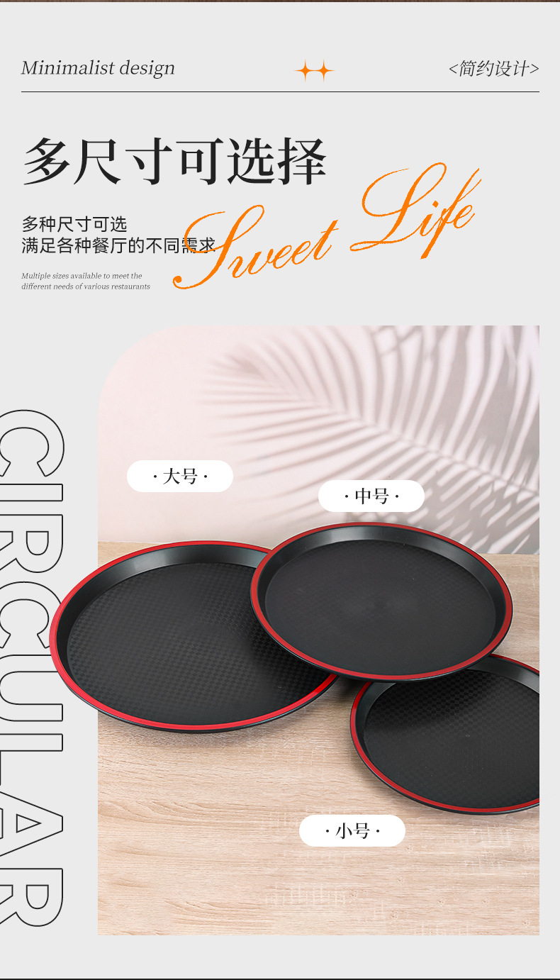 new round plastic tray hotel restaurant canteen thickened non-slip serving plate ktv bar tea tray