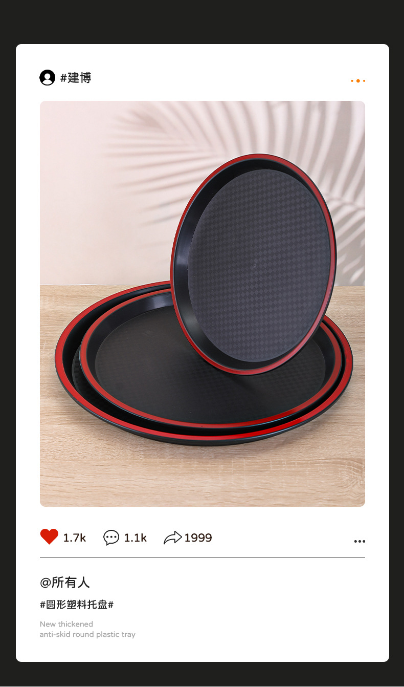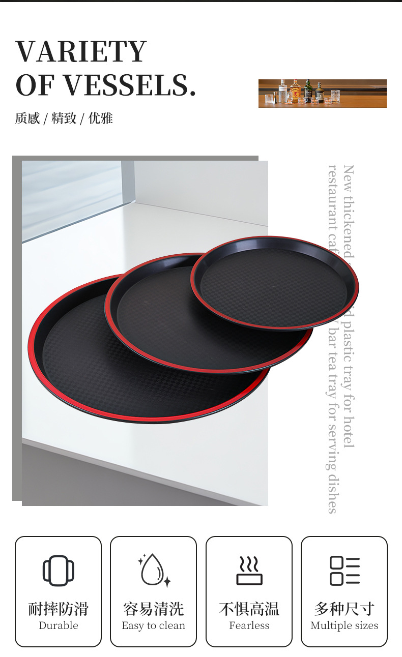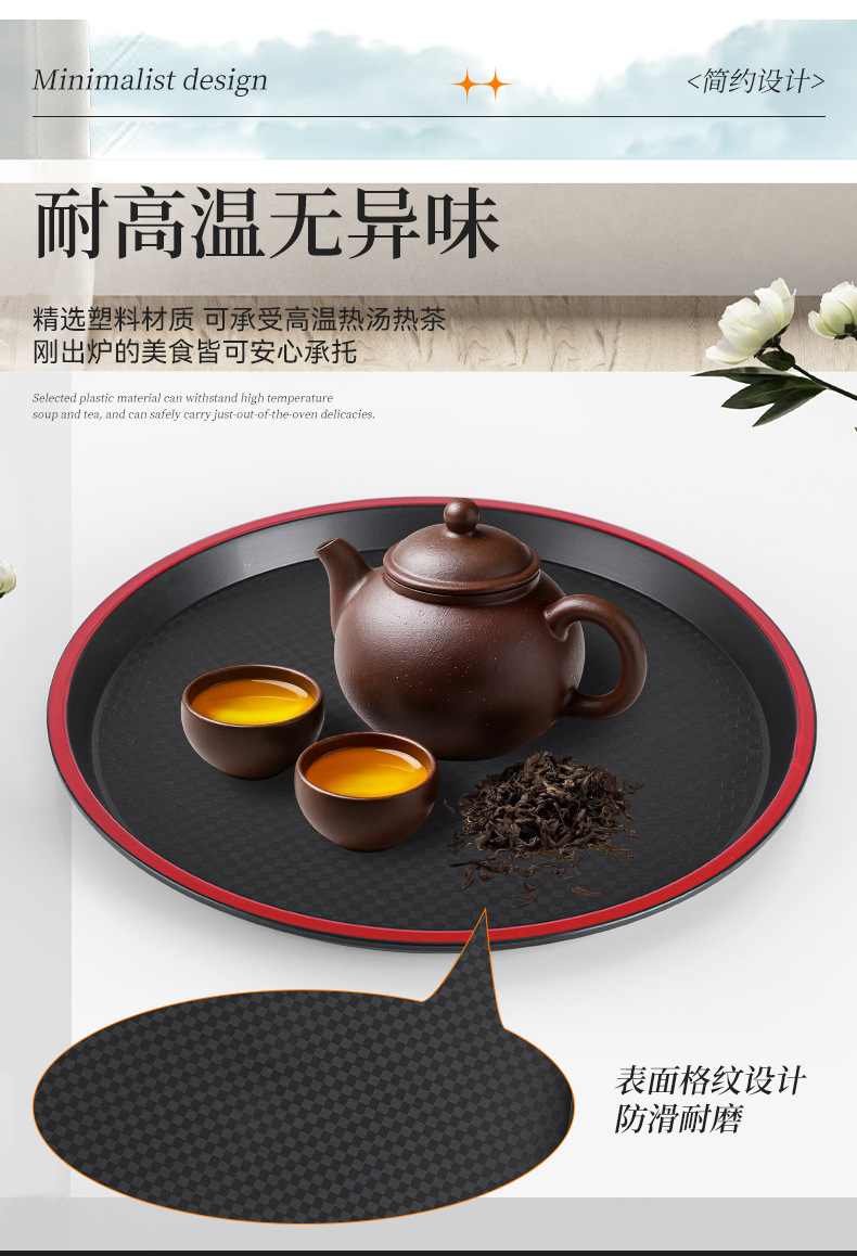 new round plastic tray hotel restaurant canteen thickened non-slip serving plate ktv bar tea tray