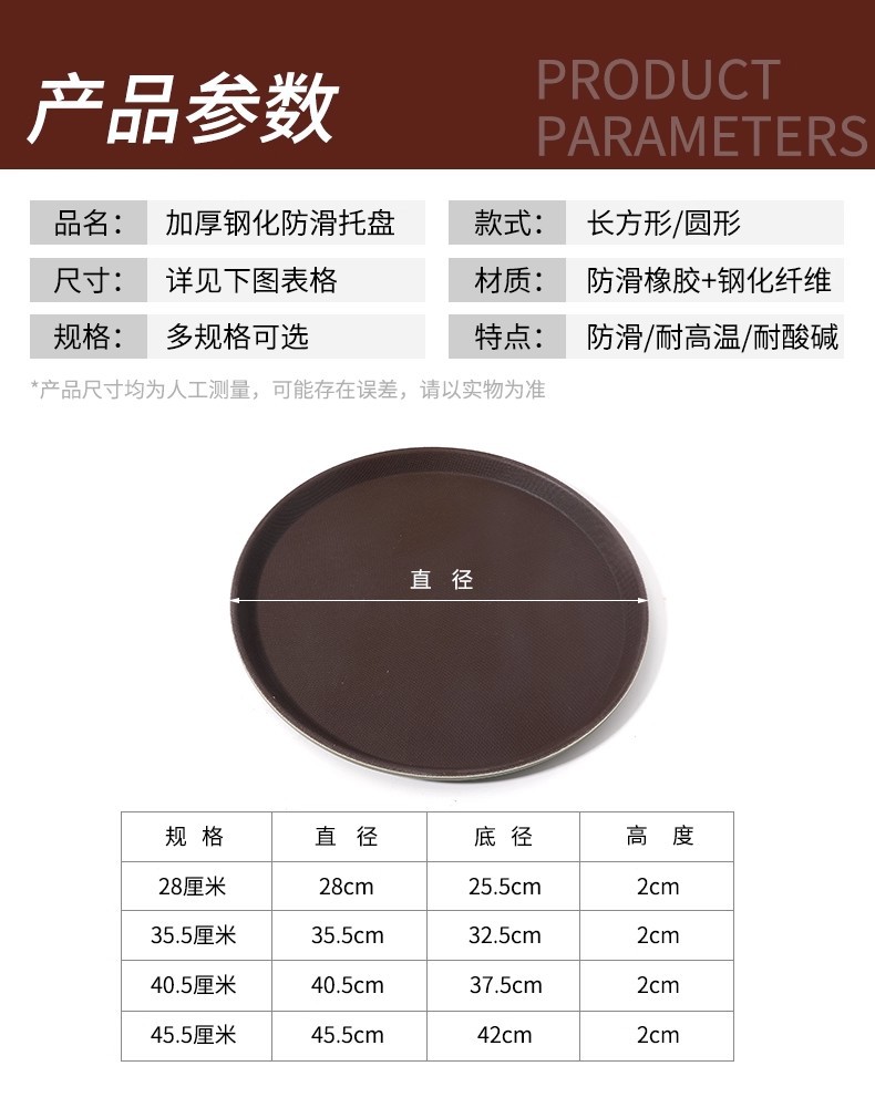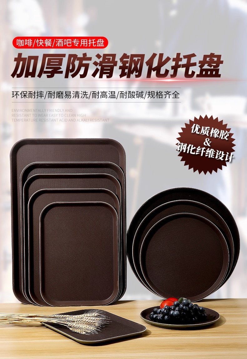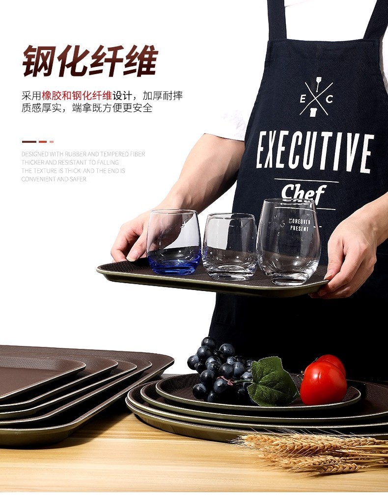 glass fiber tempered rectangular round tray hotel kitchen food delivery high-grade non-slip fast food tray commercial use