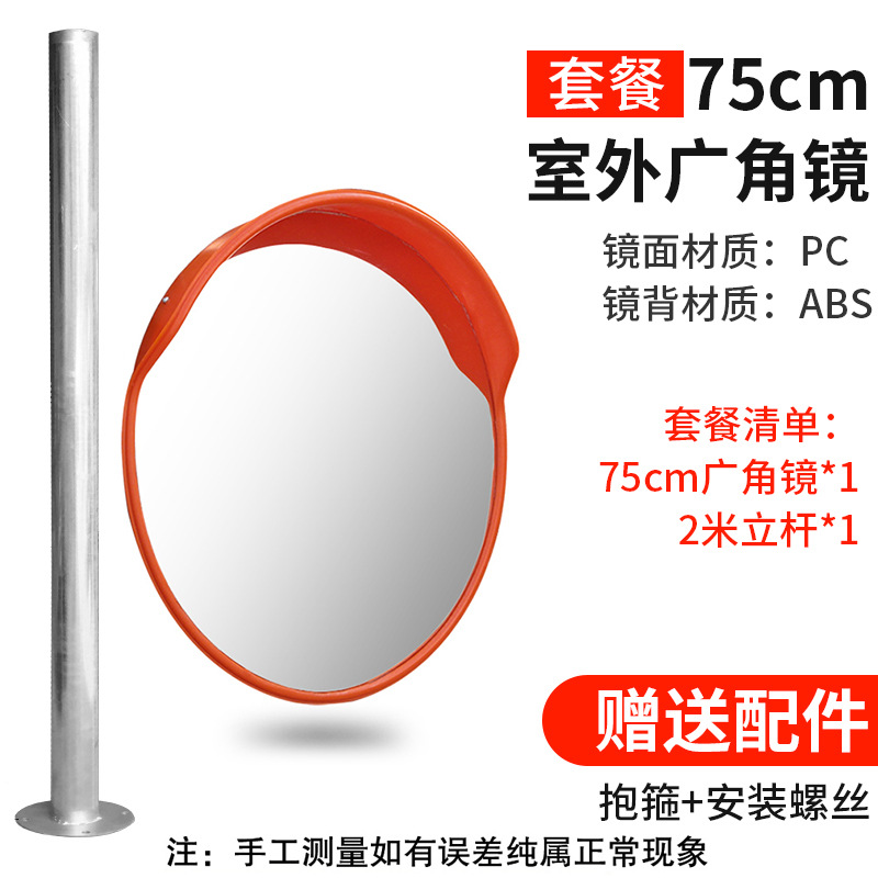 75 outdoor wide angle convex mirror +2 m galvanized pole
