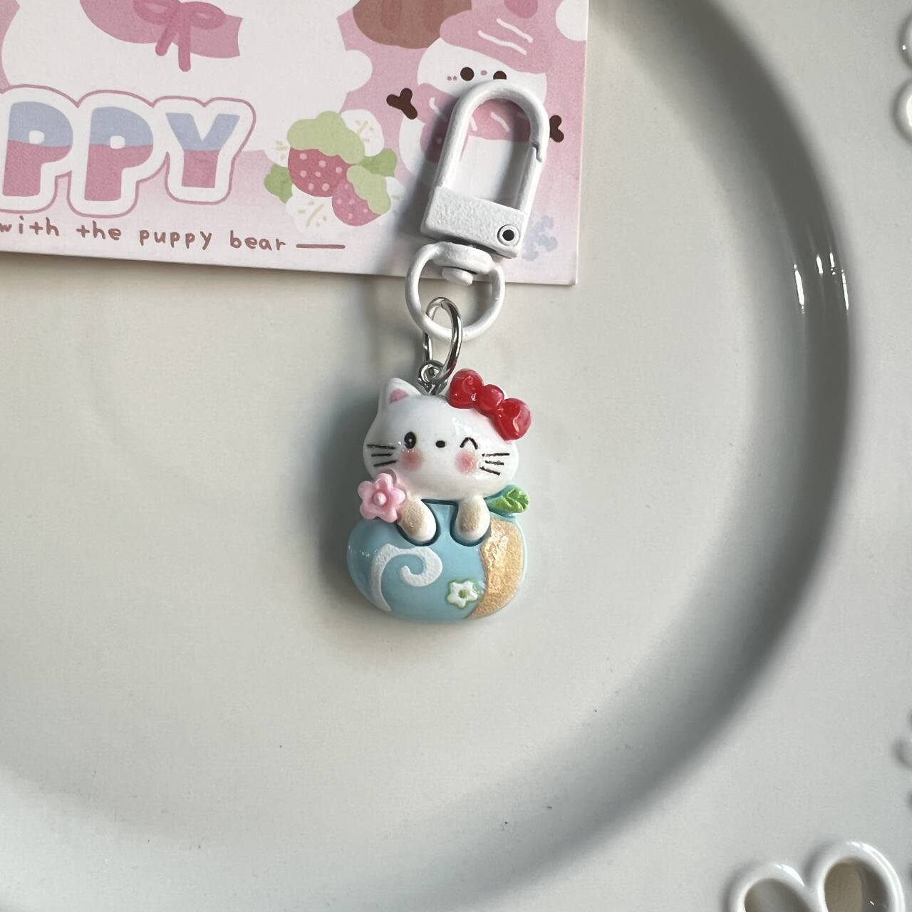 bread cat white keychain [hello kitty head]]