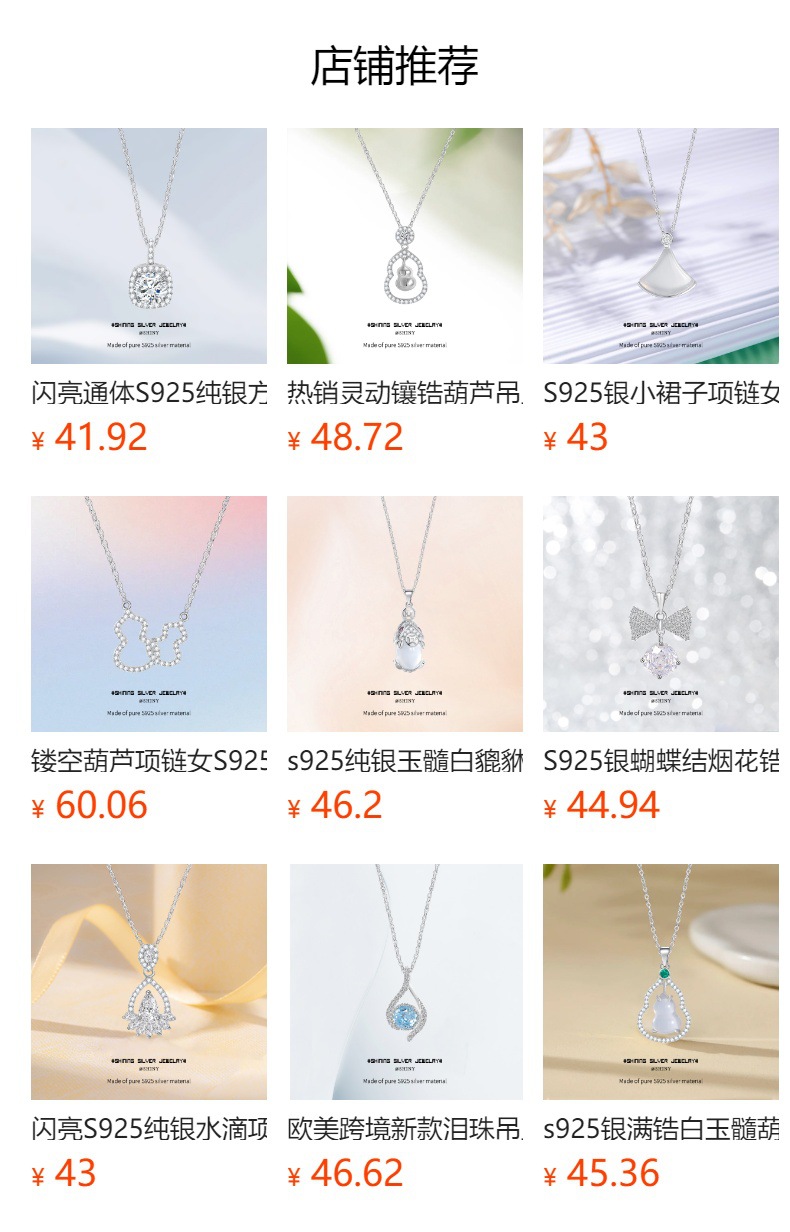 Silver Necklace, Shining Silver Jewelry, Weinan Power Flagship Store, Weinan Jewelry Co., Ltd., a powerful supplier, Oubiya