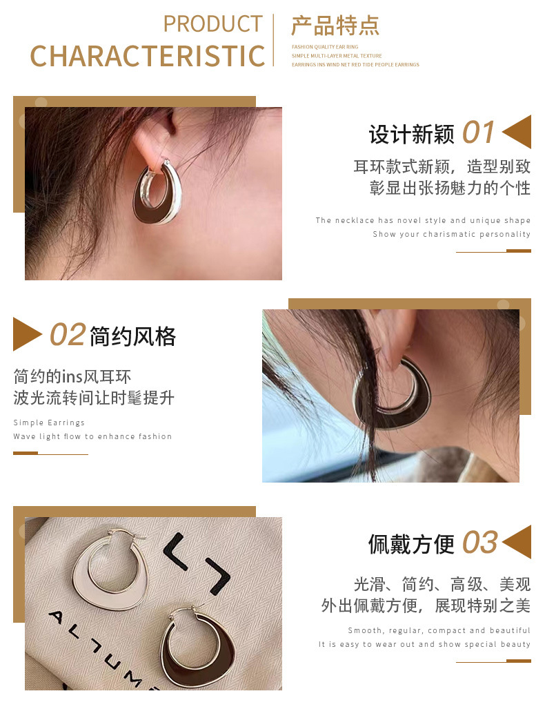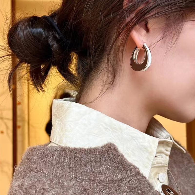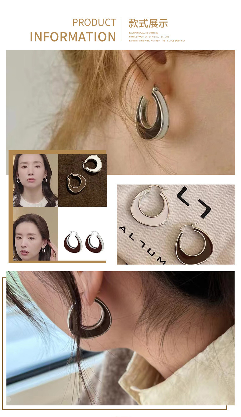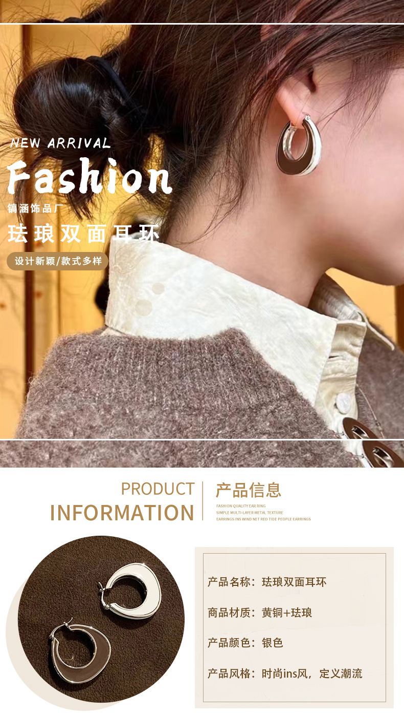 enamel glaze white earrings for women european and american special-interest design classic earrings elegant dripping oil double-sided geometric modeling