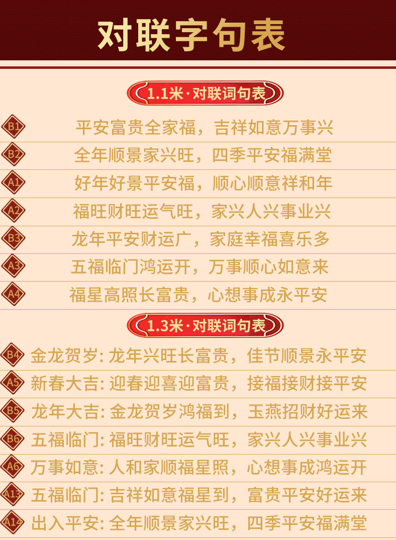 | 1.3 m auspicious words and sentences random | CN¥ 2.02 | 9209 pair available |
