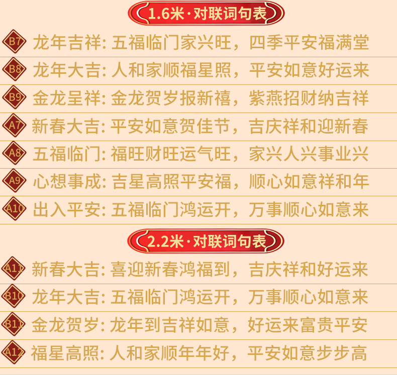 | 4 meters-the spring festival is good, everything is good, the icing on the cake, the future is good | CN¥ 8.36 | 1874 pair available |