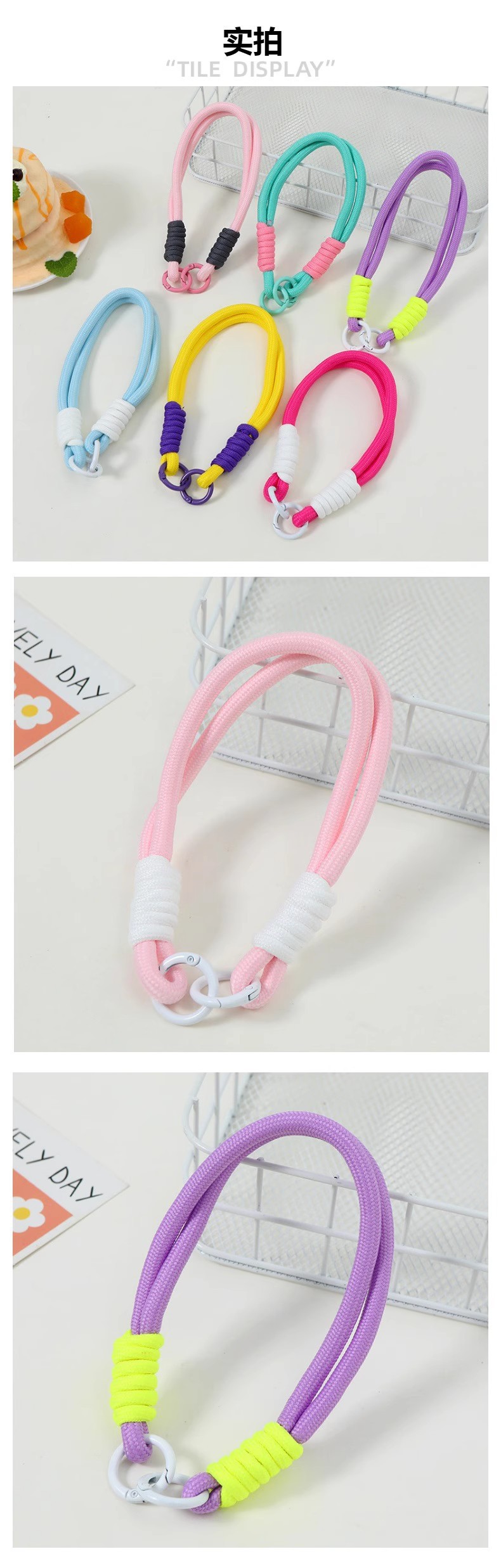 double circle color matching carrying strap-light green splicing pink
