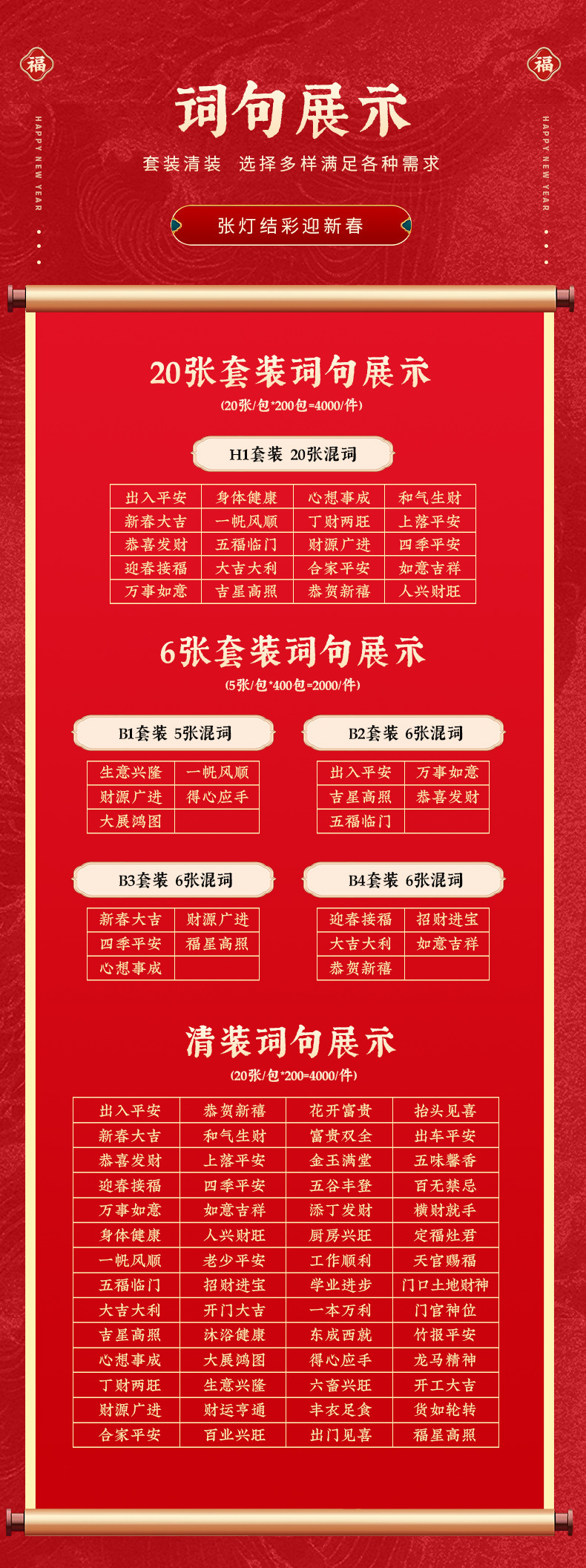black word with glue spring festival couplets-package b4(5 pieces mixed)