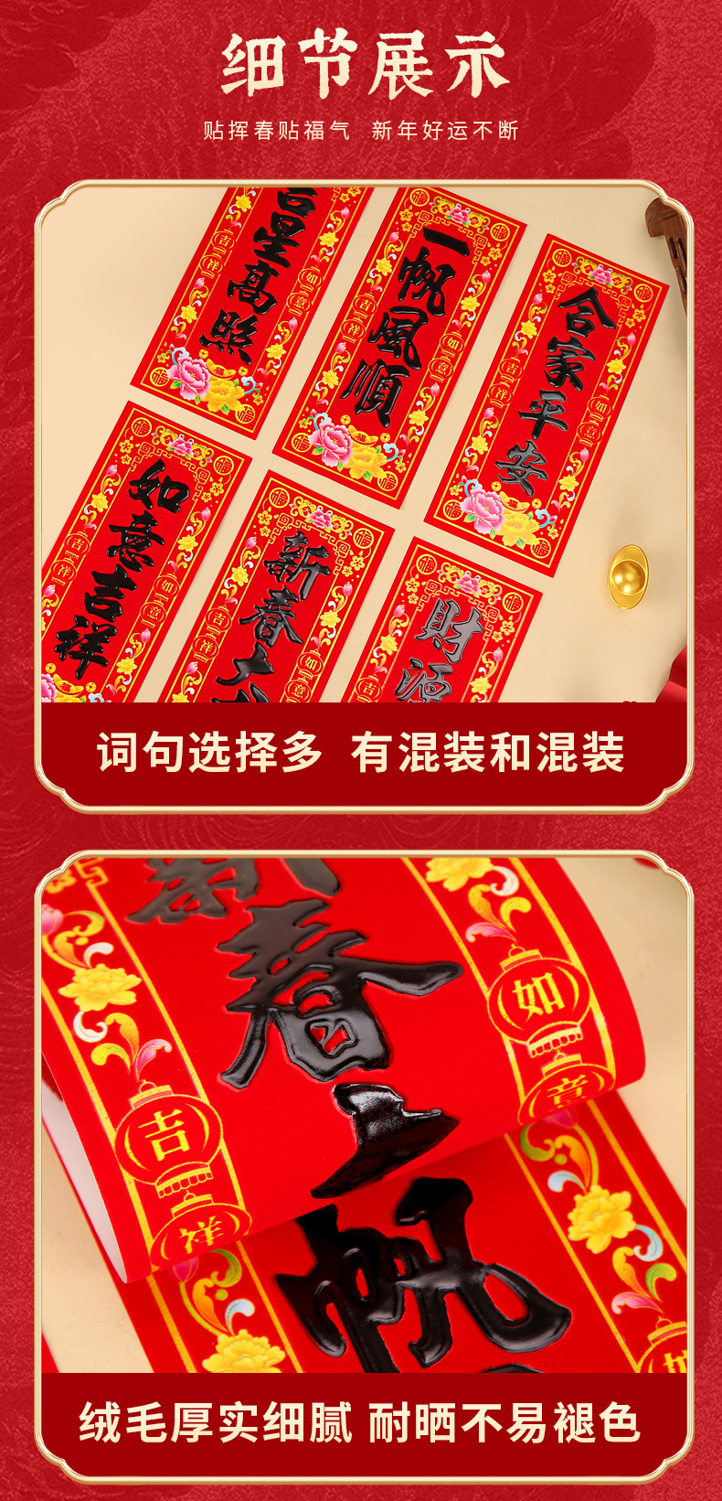 flocking with glue spring festival couplets-package h15(10 words mixed)