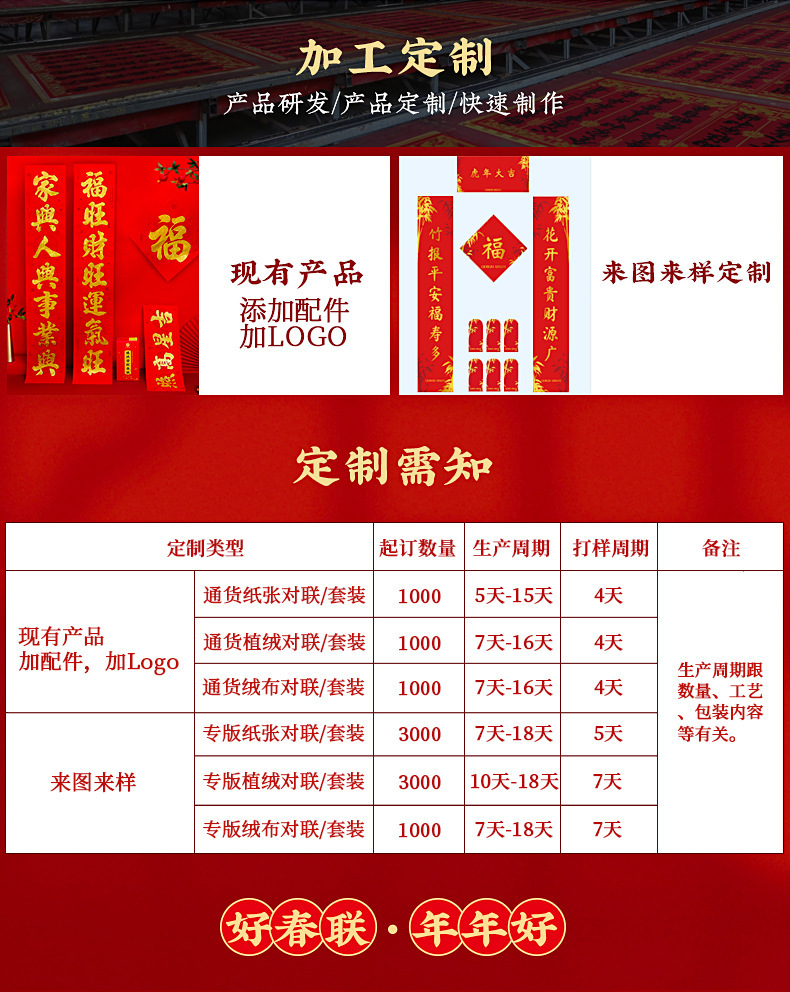 flocking with glue spring festival couplets-package h14(10 words mixed)