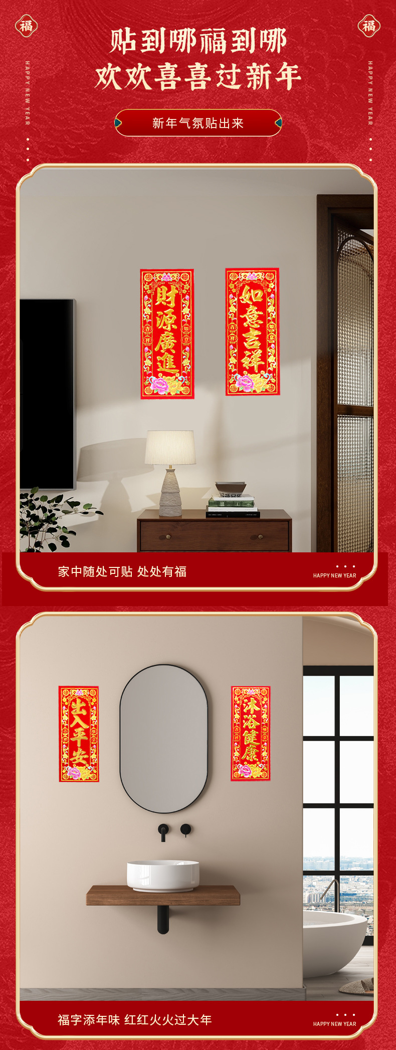 flocking with glue spring festival couplets -- h24 (harmony at home brings prosperity)