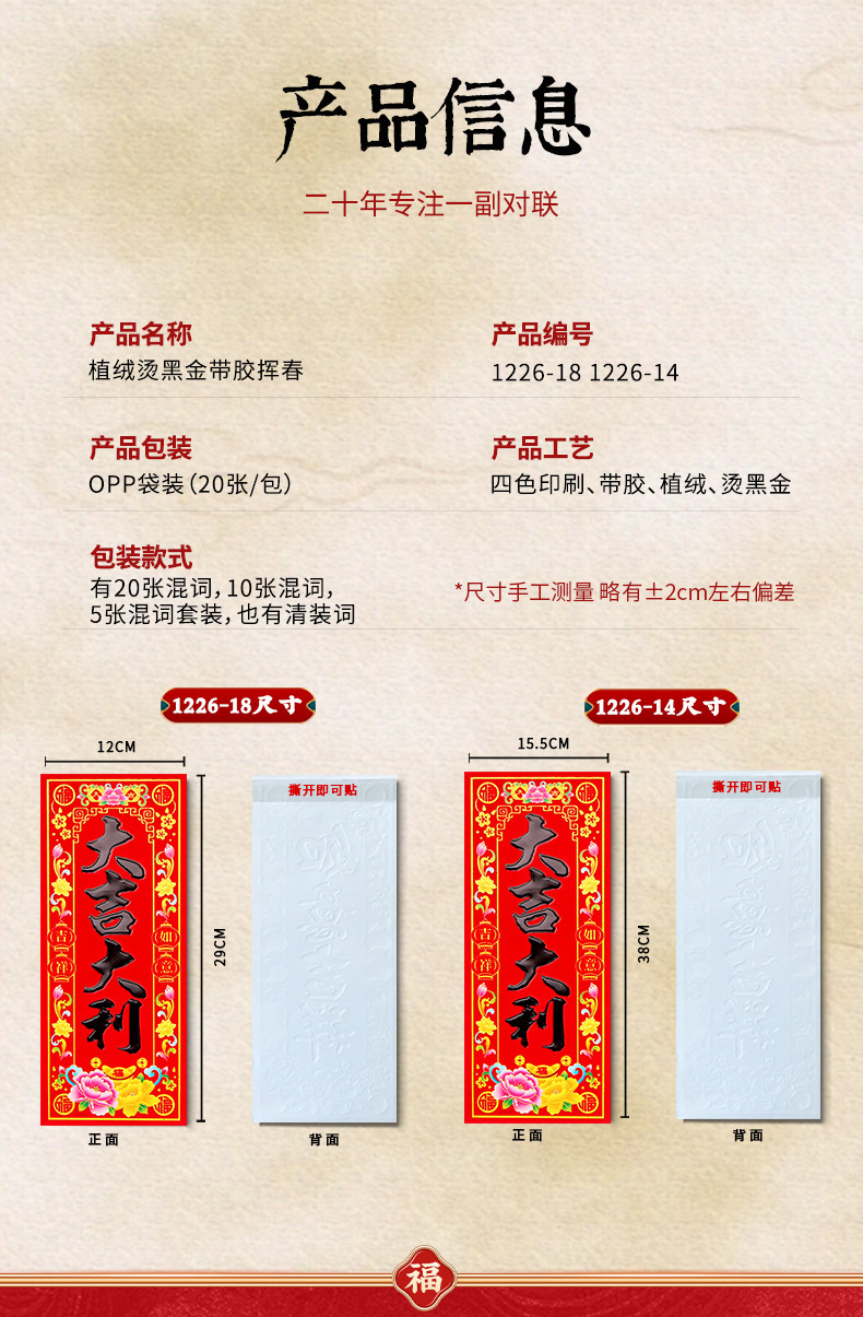 flocking with glue spring festival couplets -- h1 suit (20 mixed words)