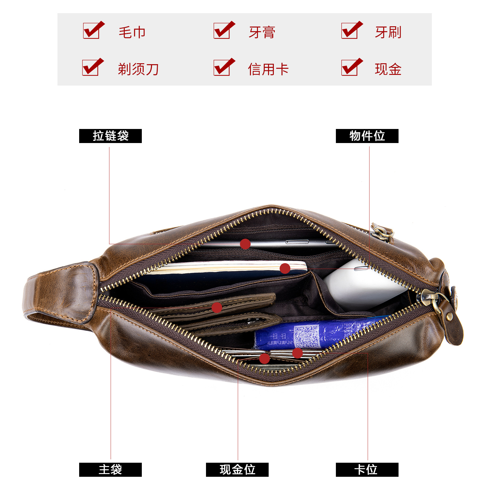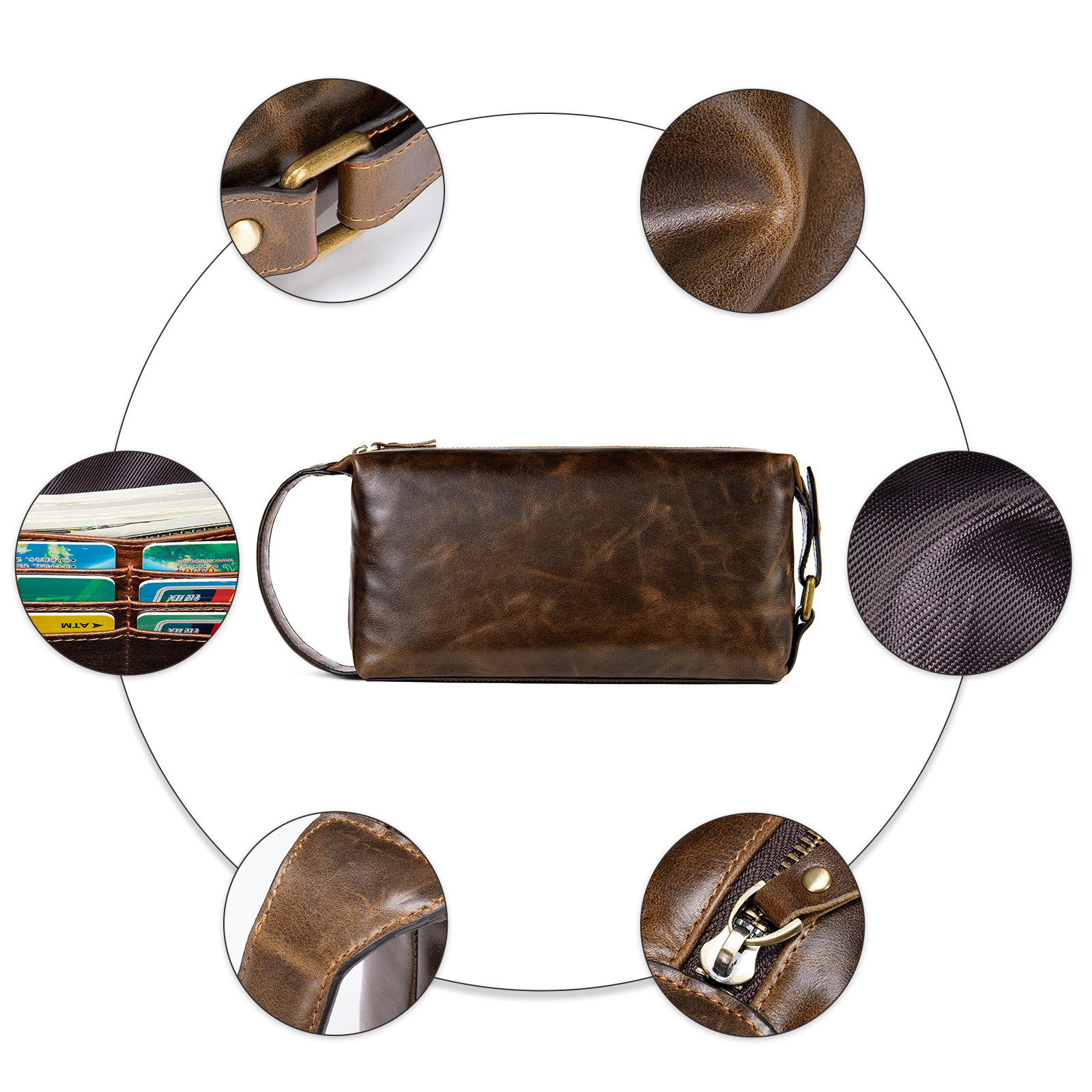 retro first layer cowhide business clutch men's high-grade leather travel large capacity outdoor toiletries bag men's