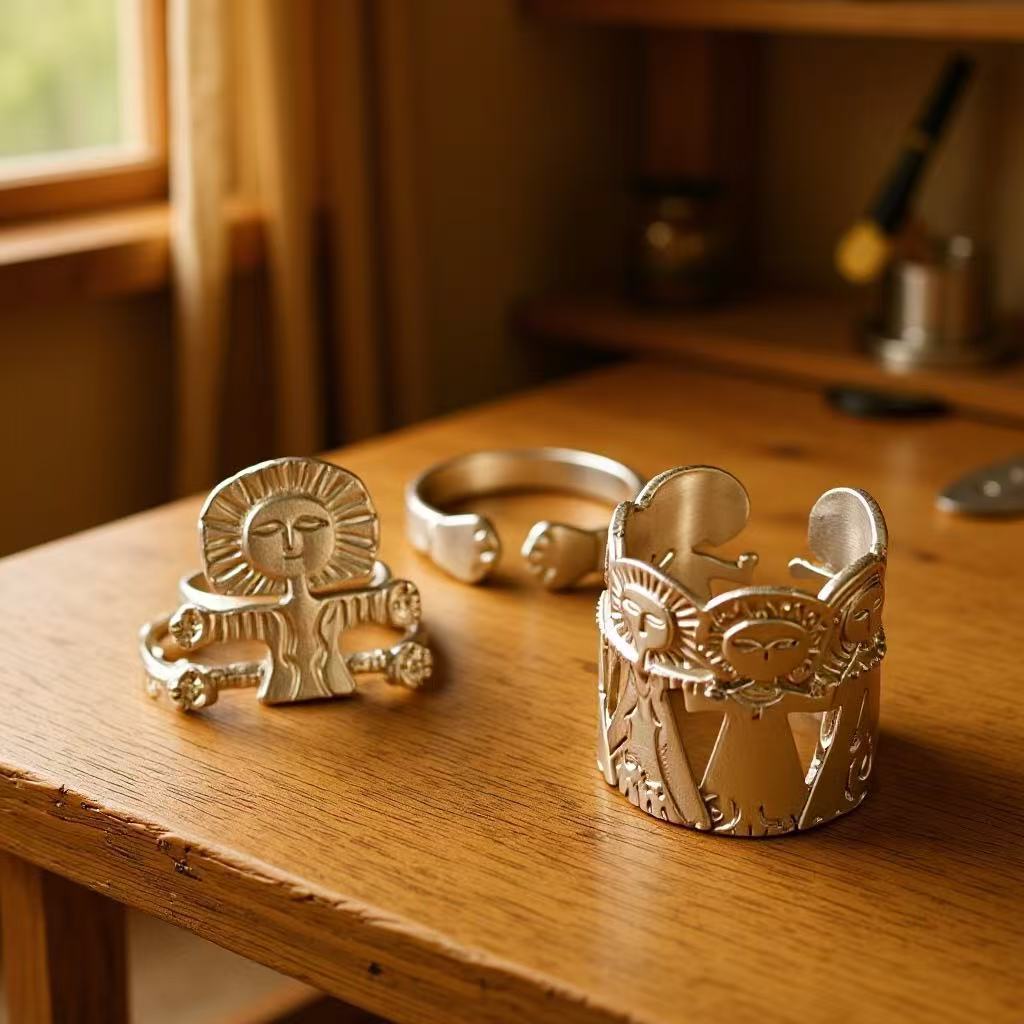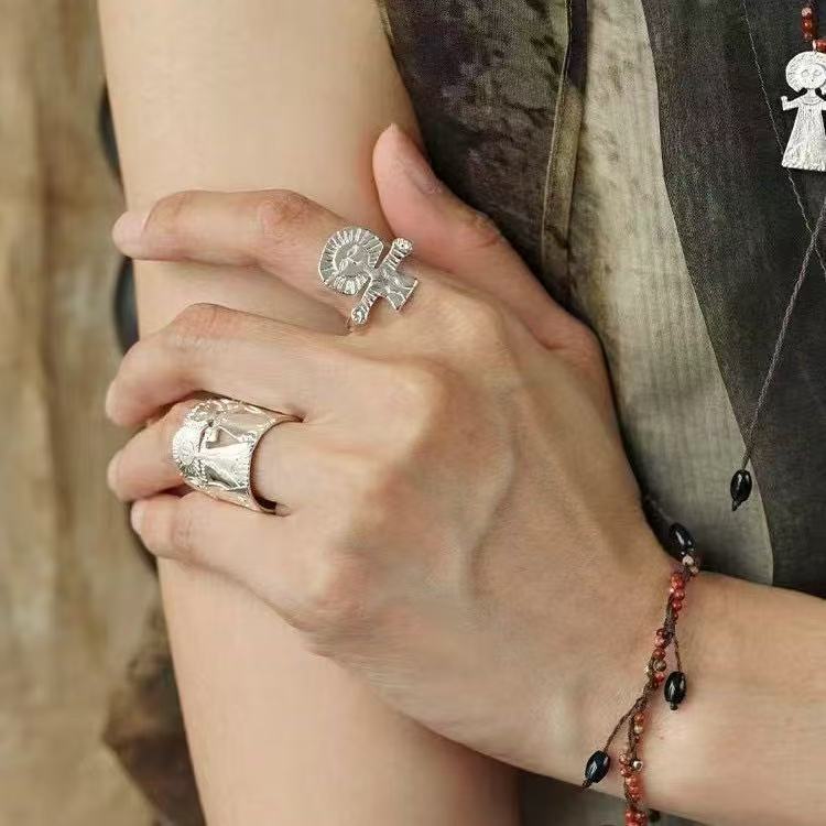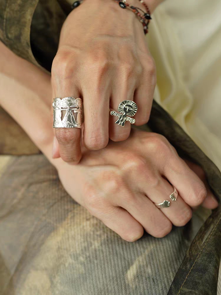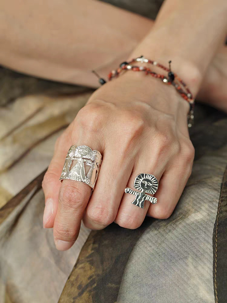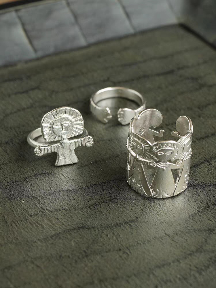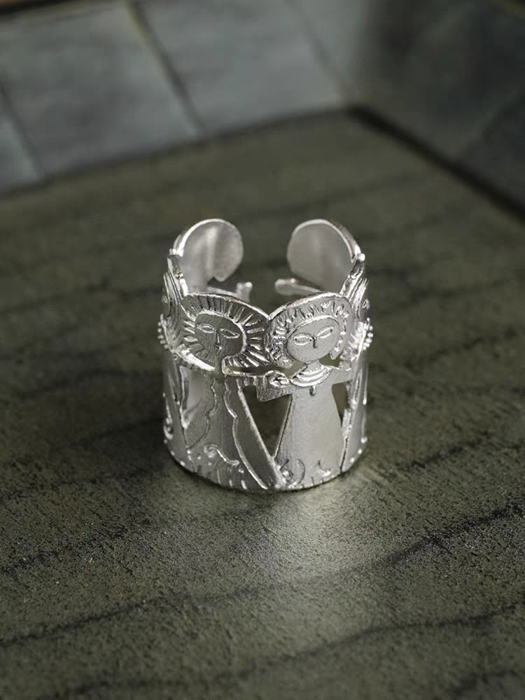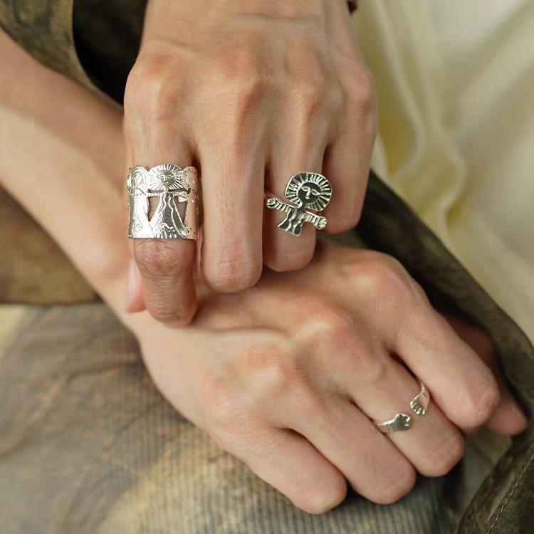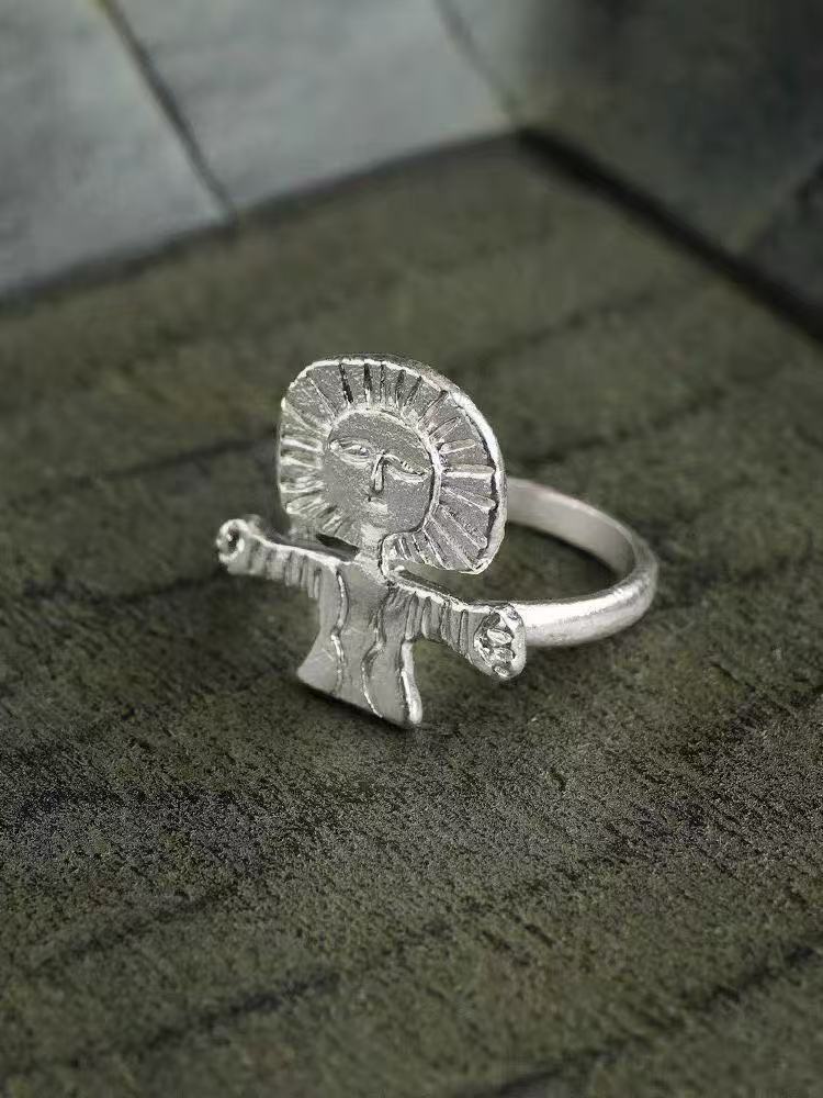 meditation man silver open ring