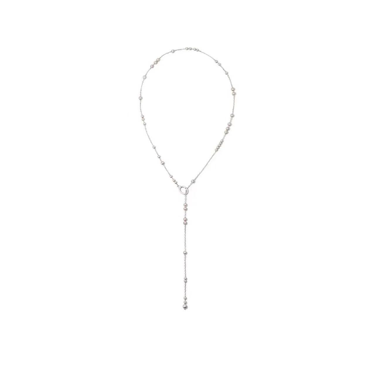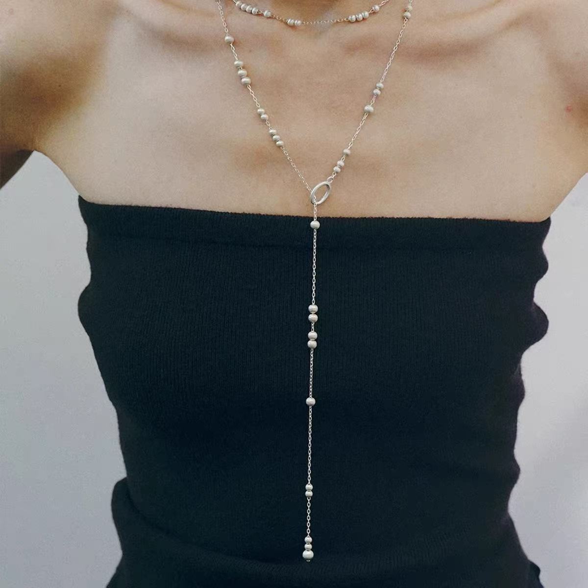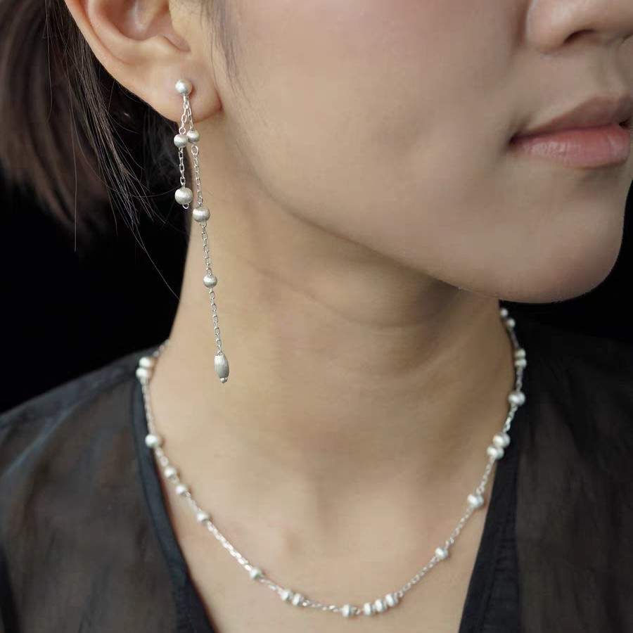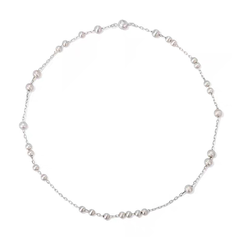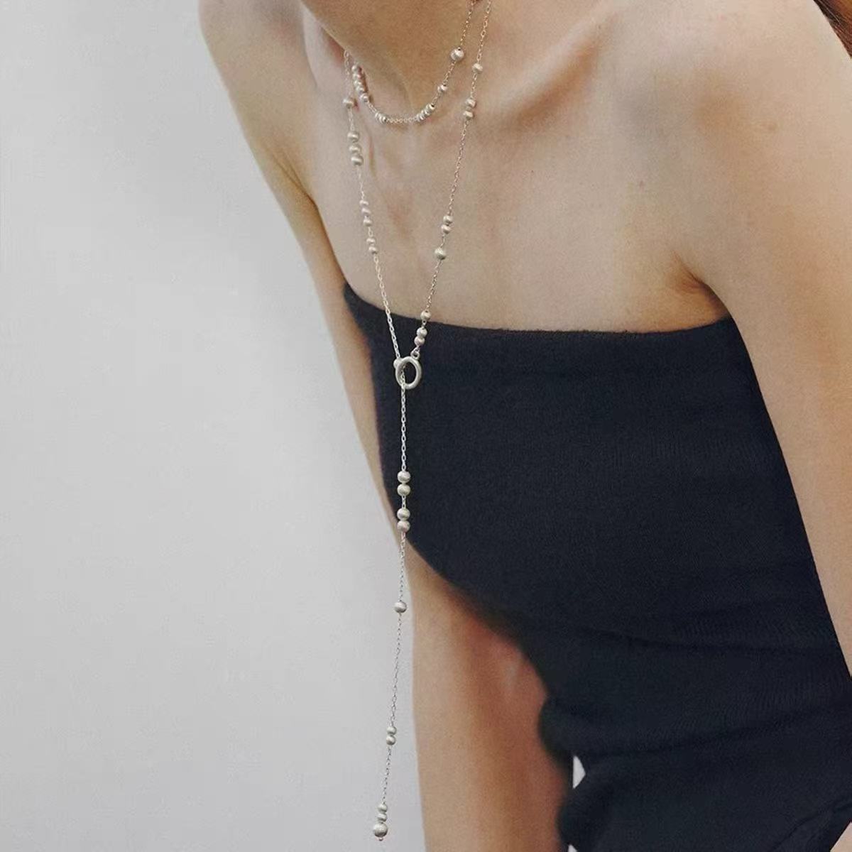 silver long style copper ball brushed necklace