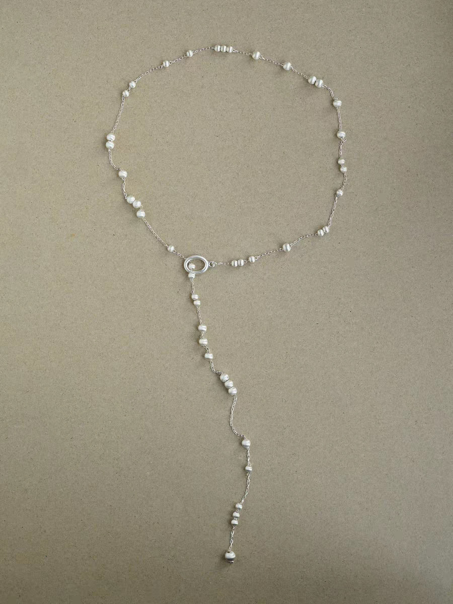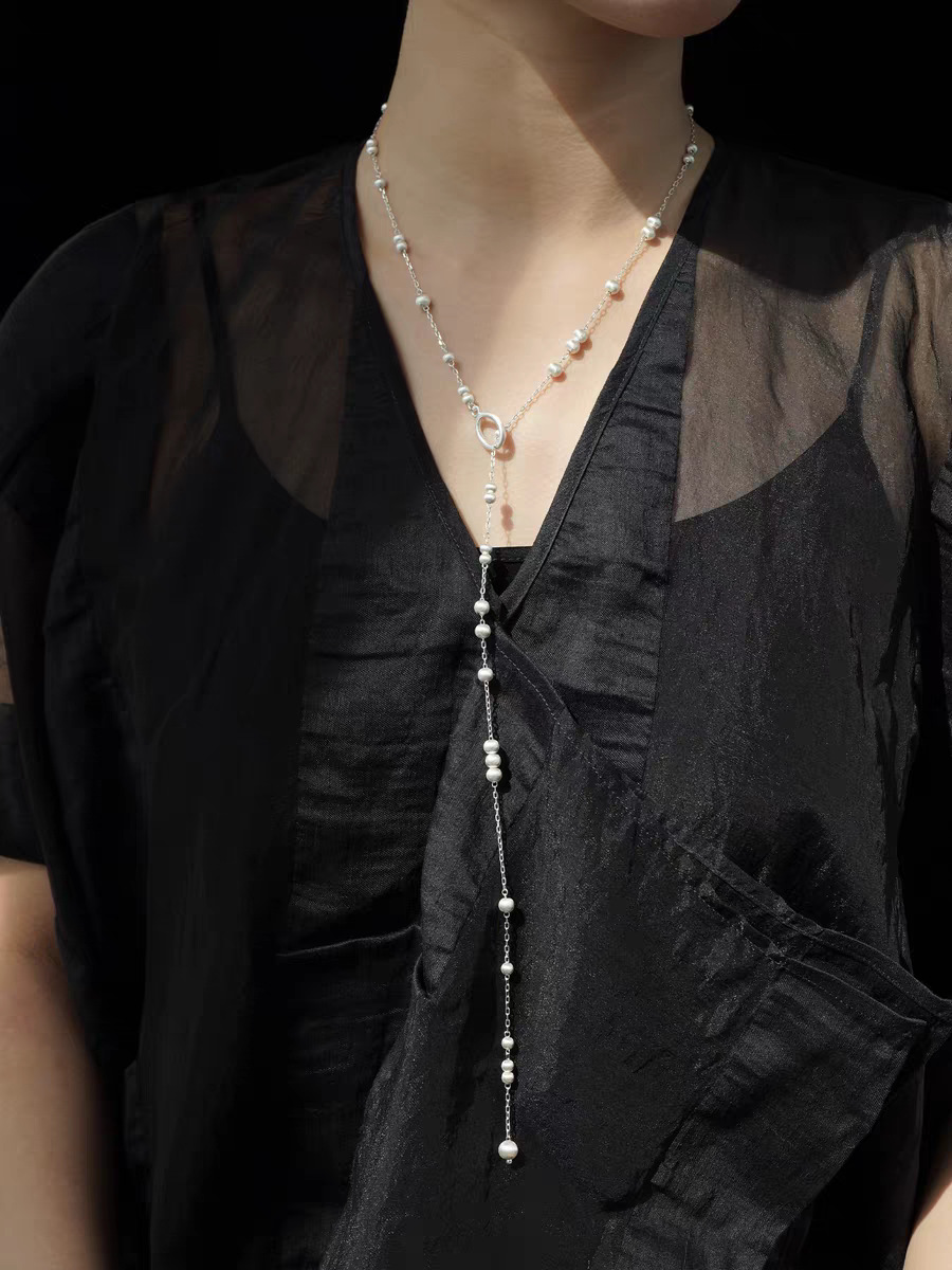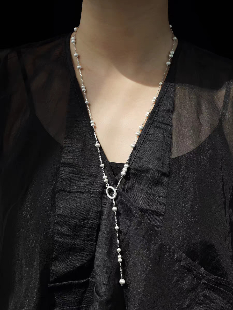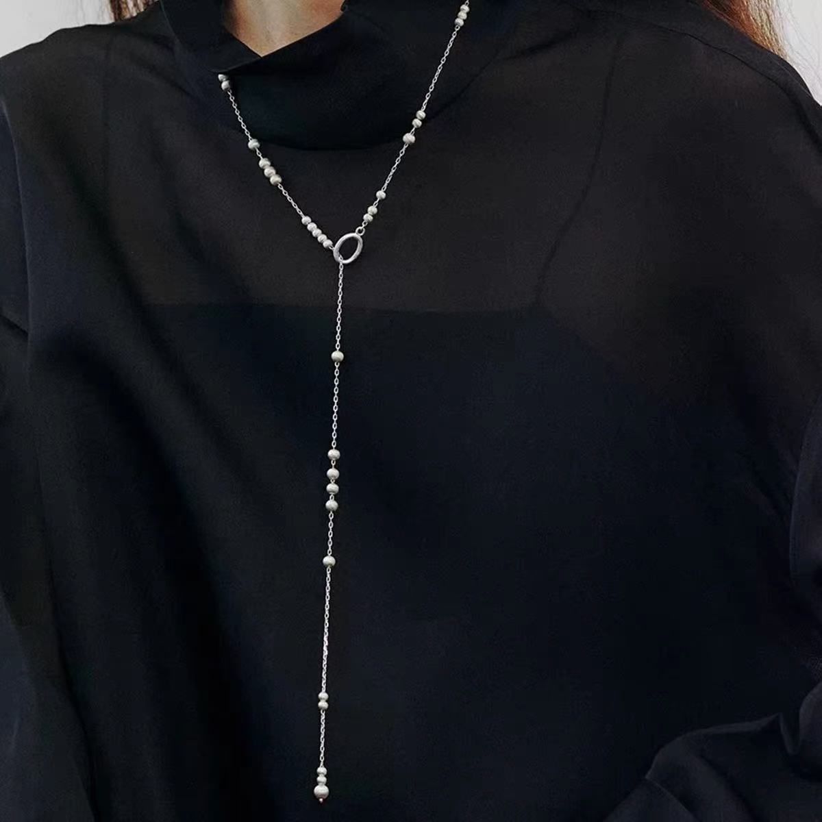 silver long style copper ball brushed necklace