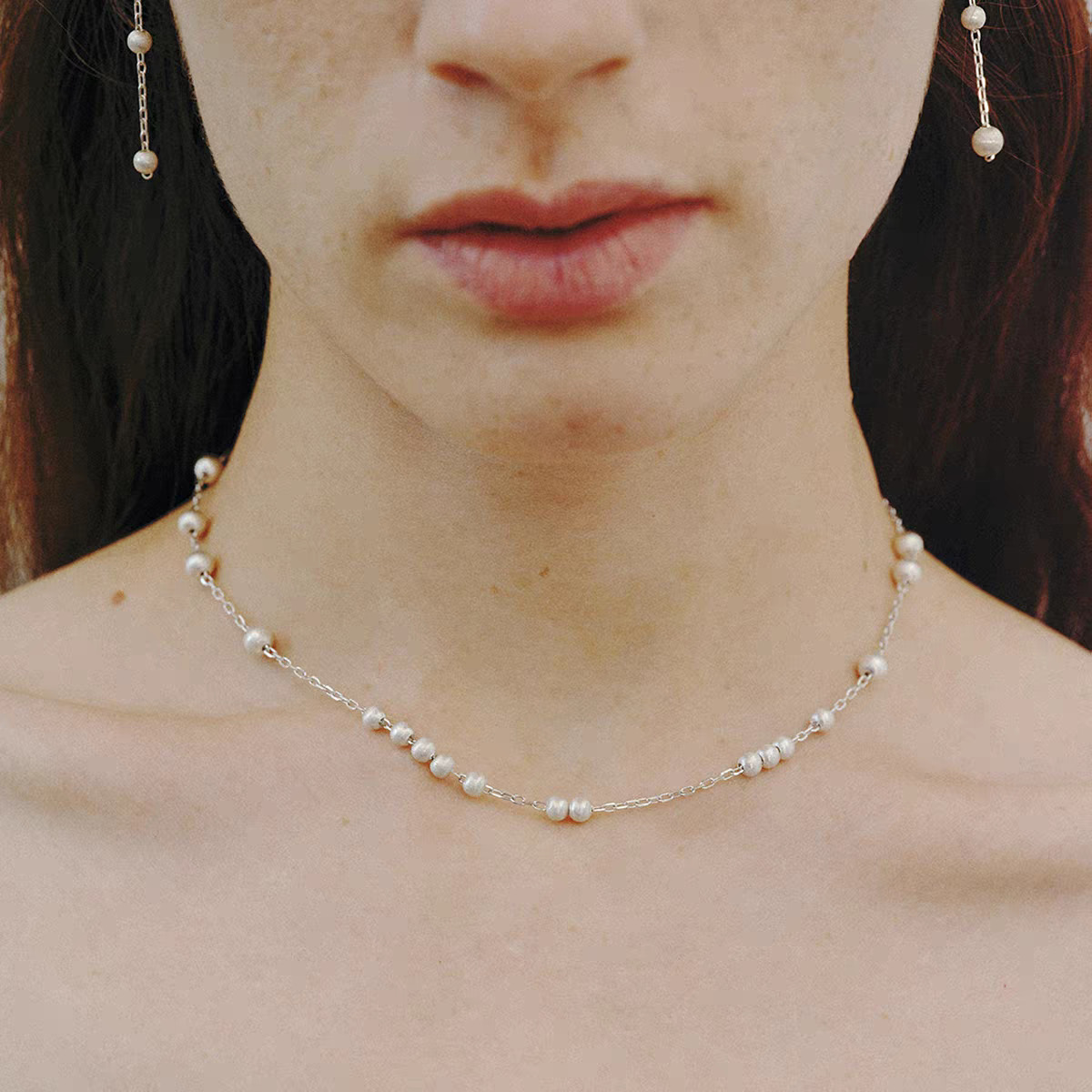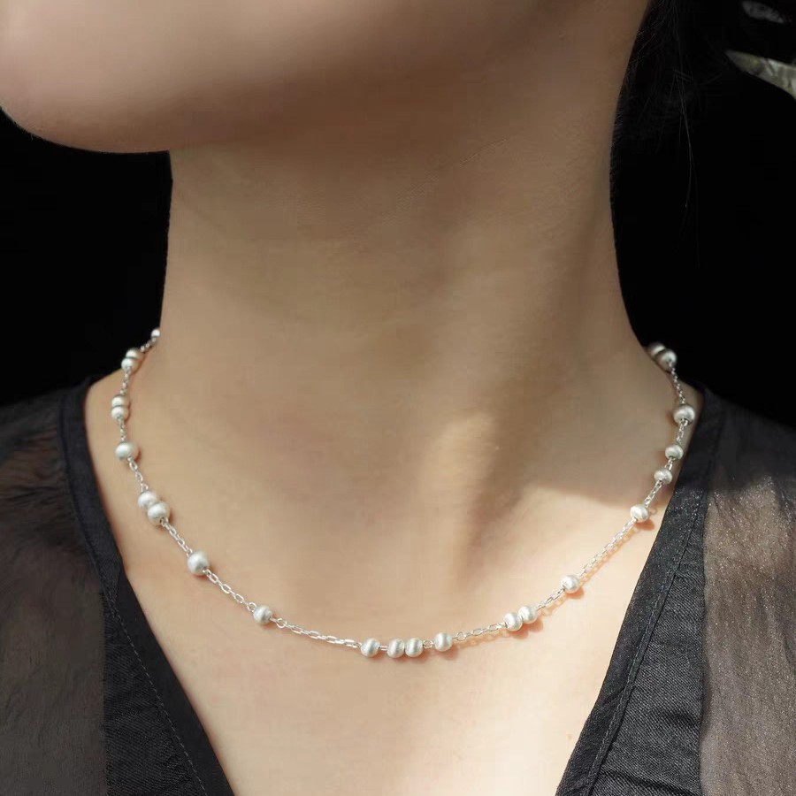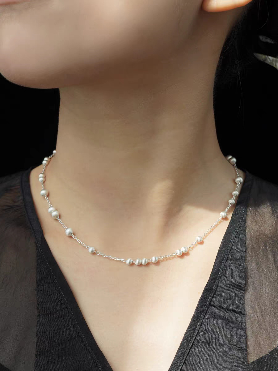 silver short copper ball brushed necklace