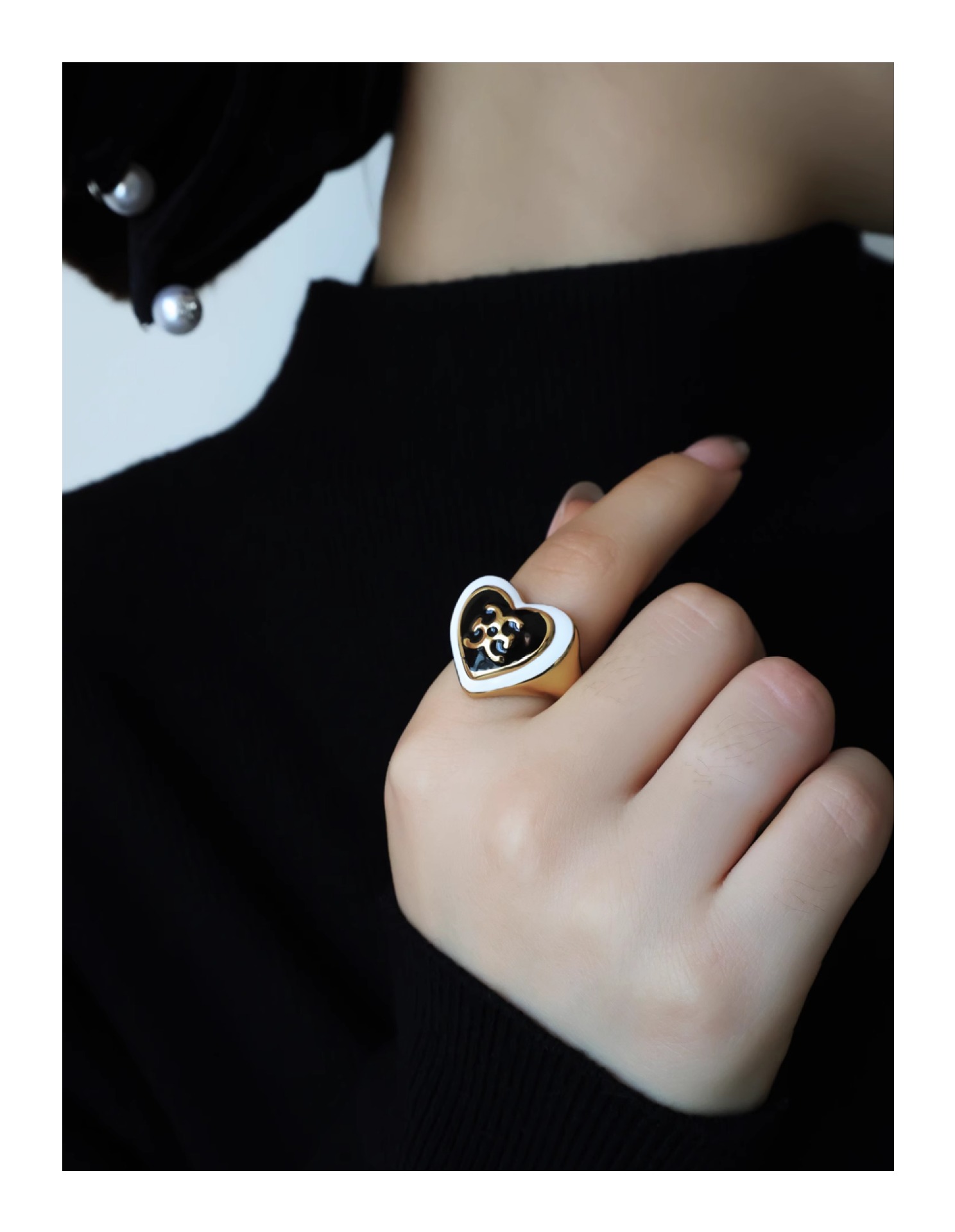 black + white ring