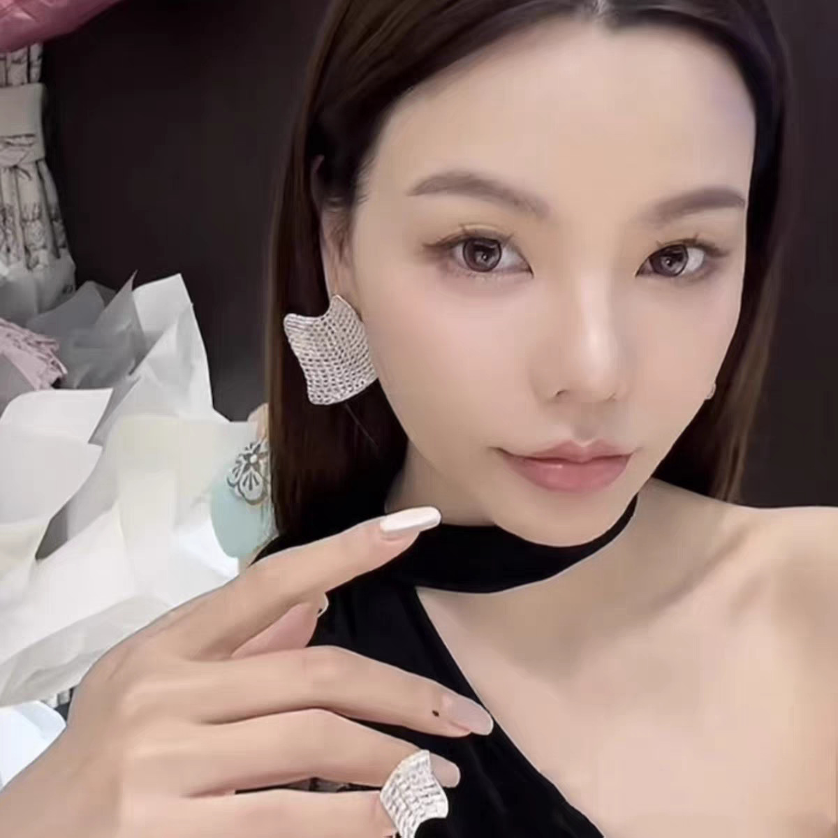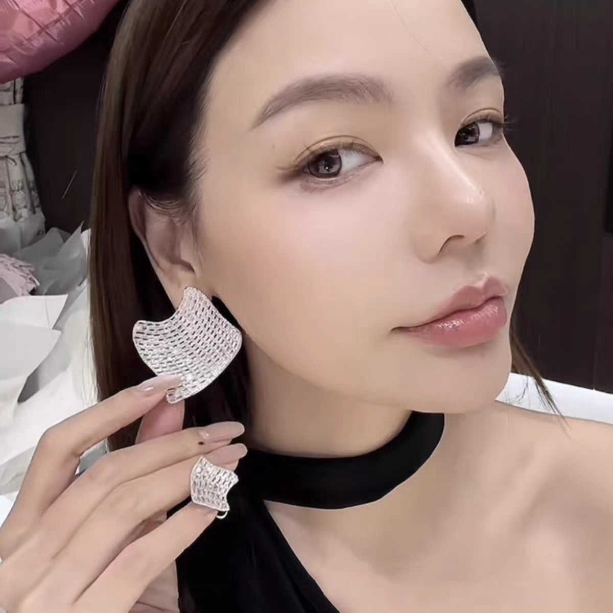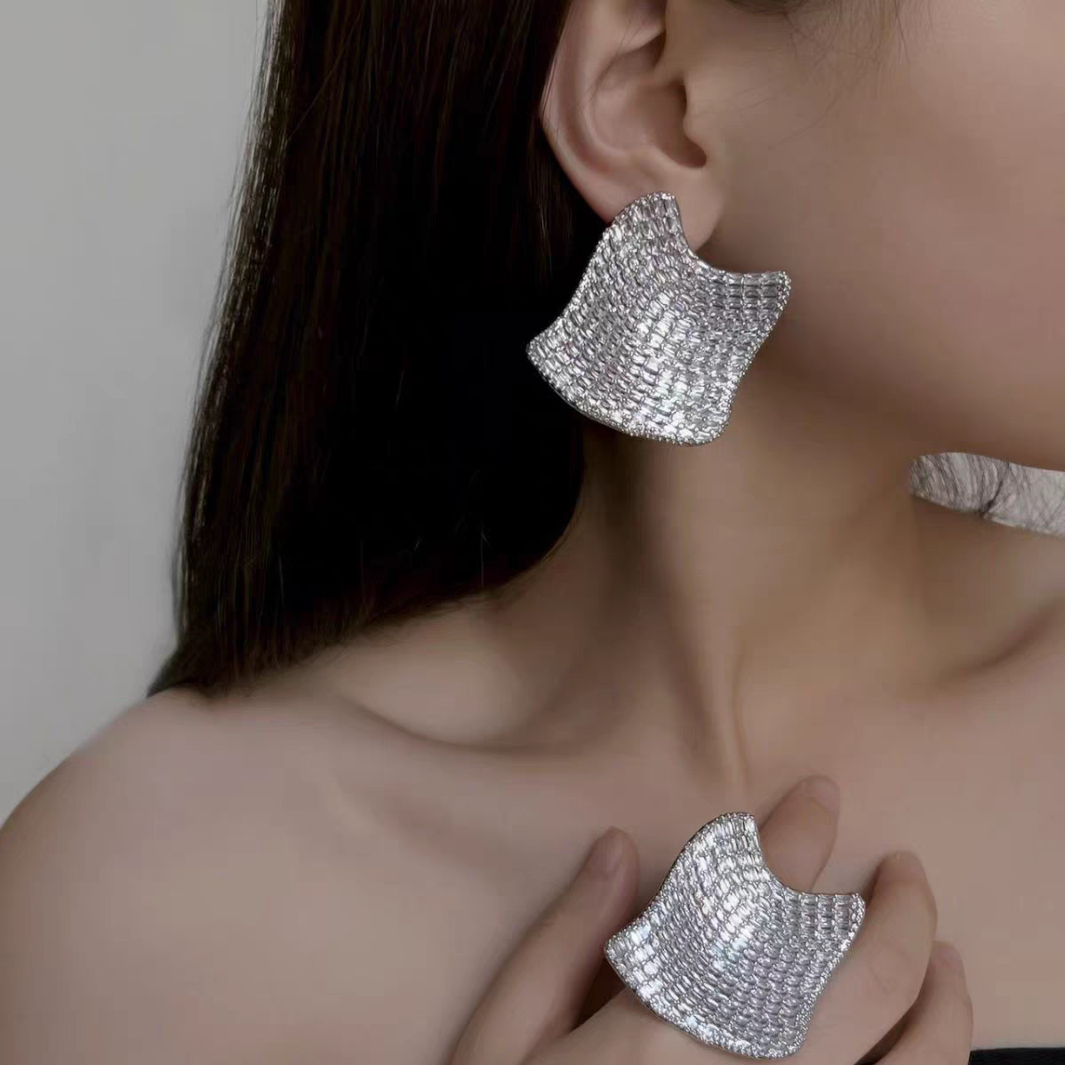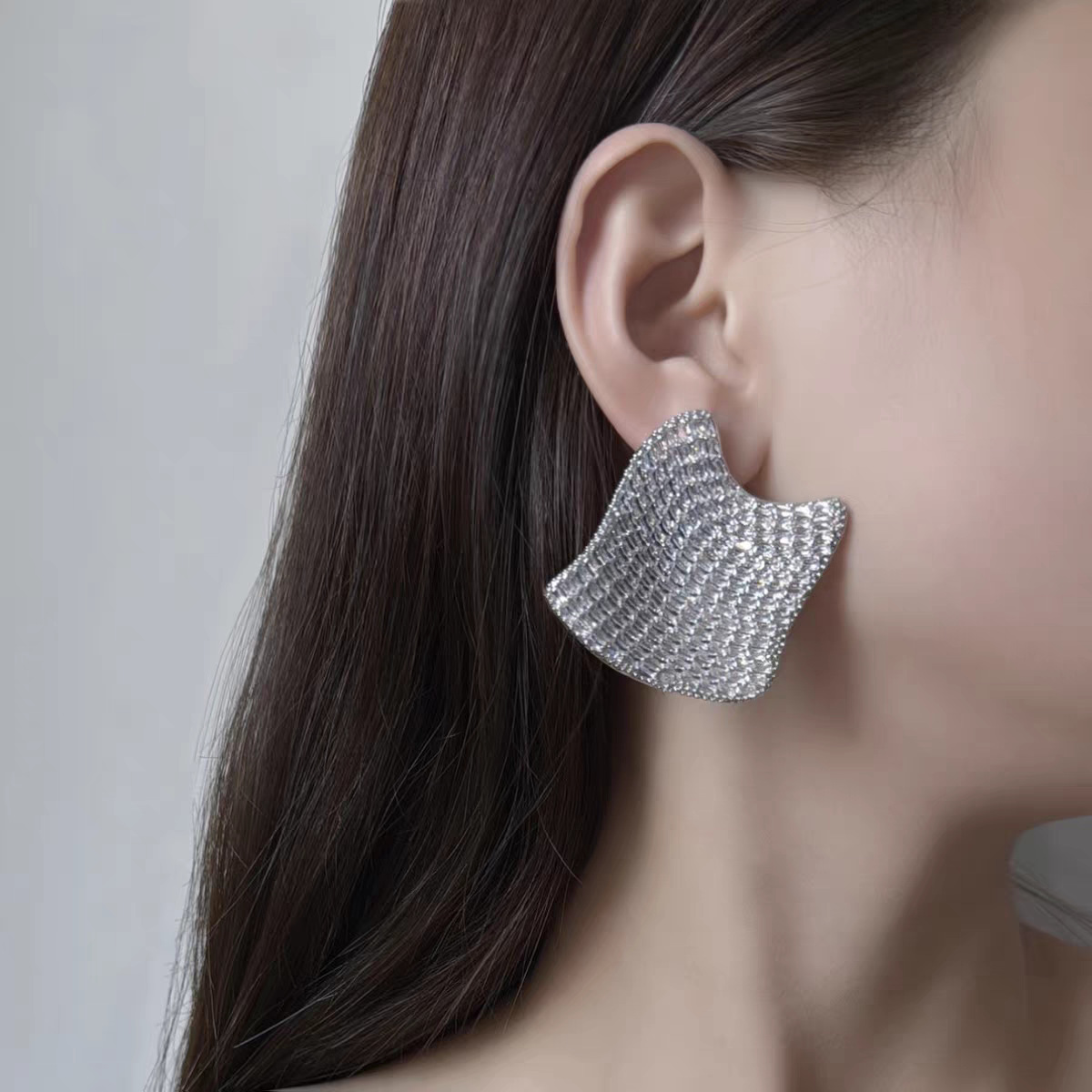 silver full zirconium earrings