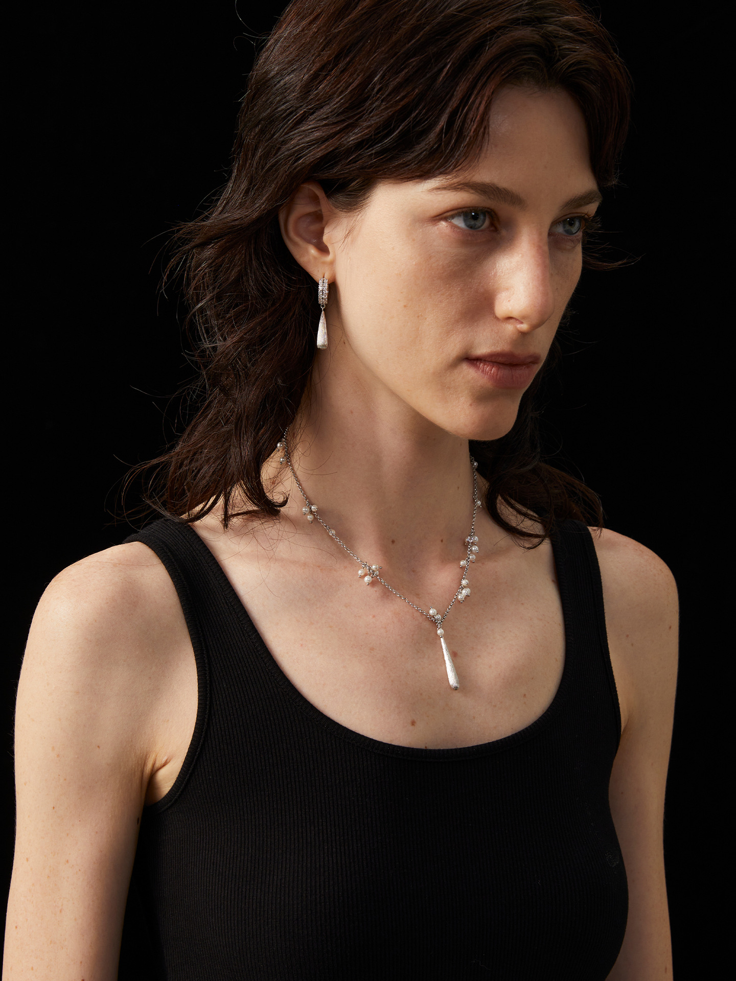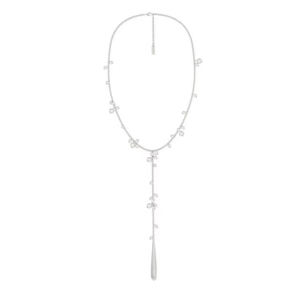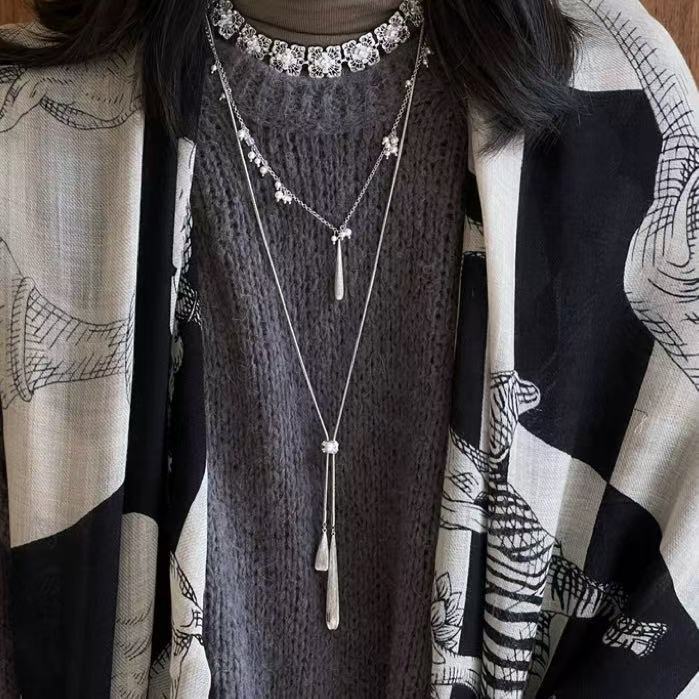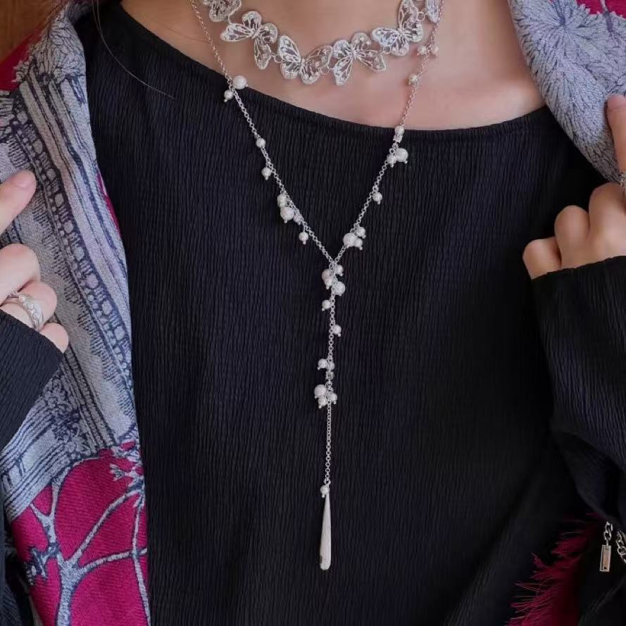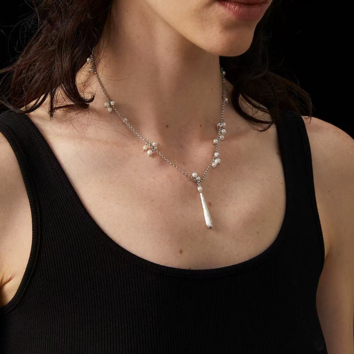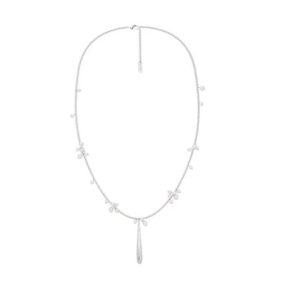 silver brushed water drop long necklace