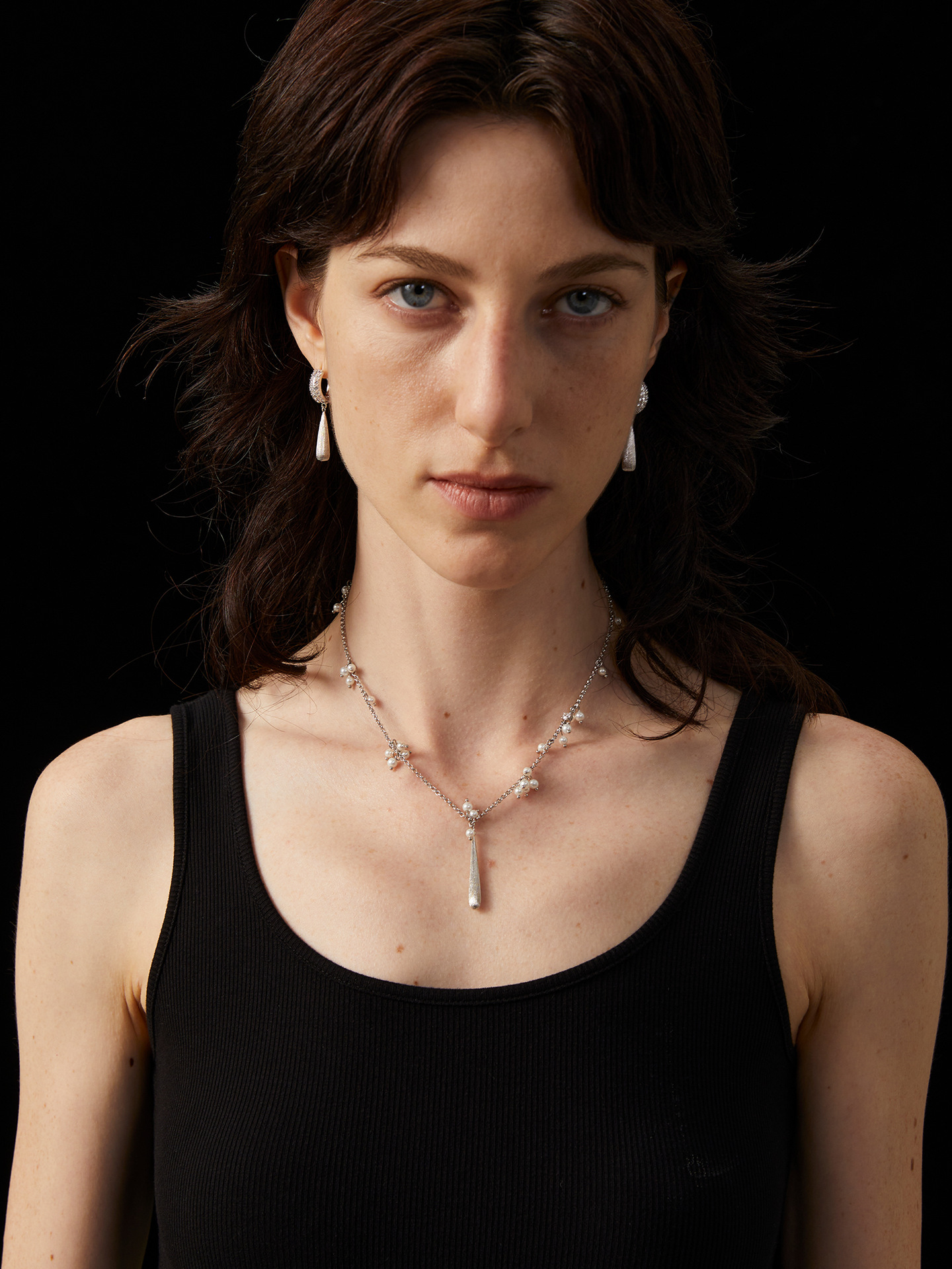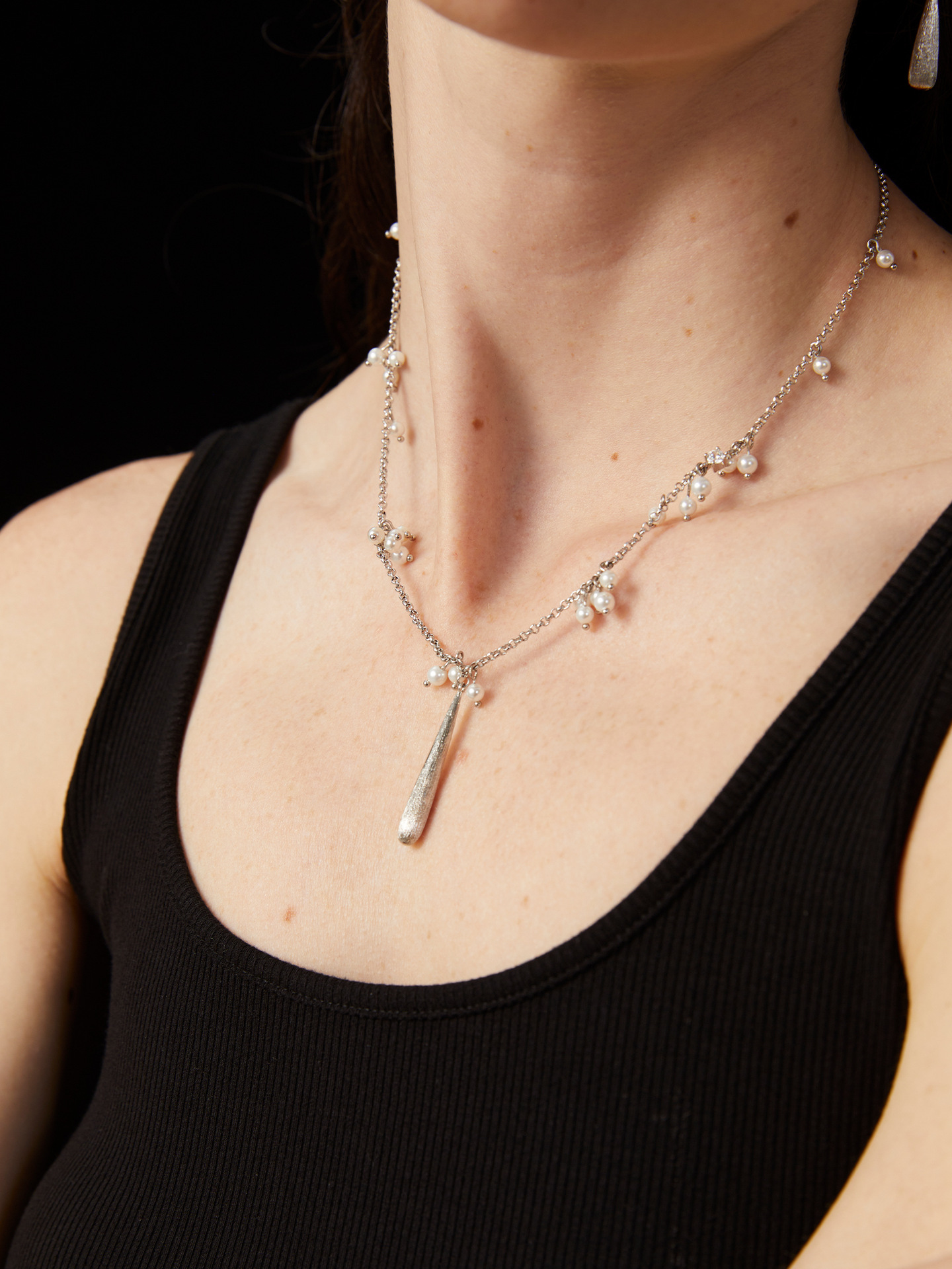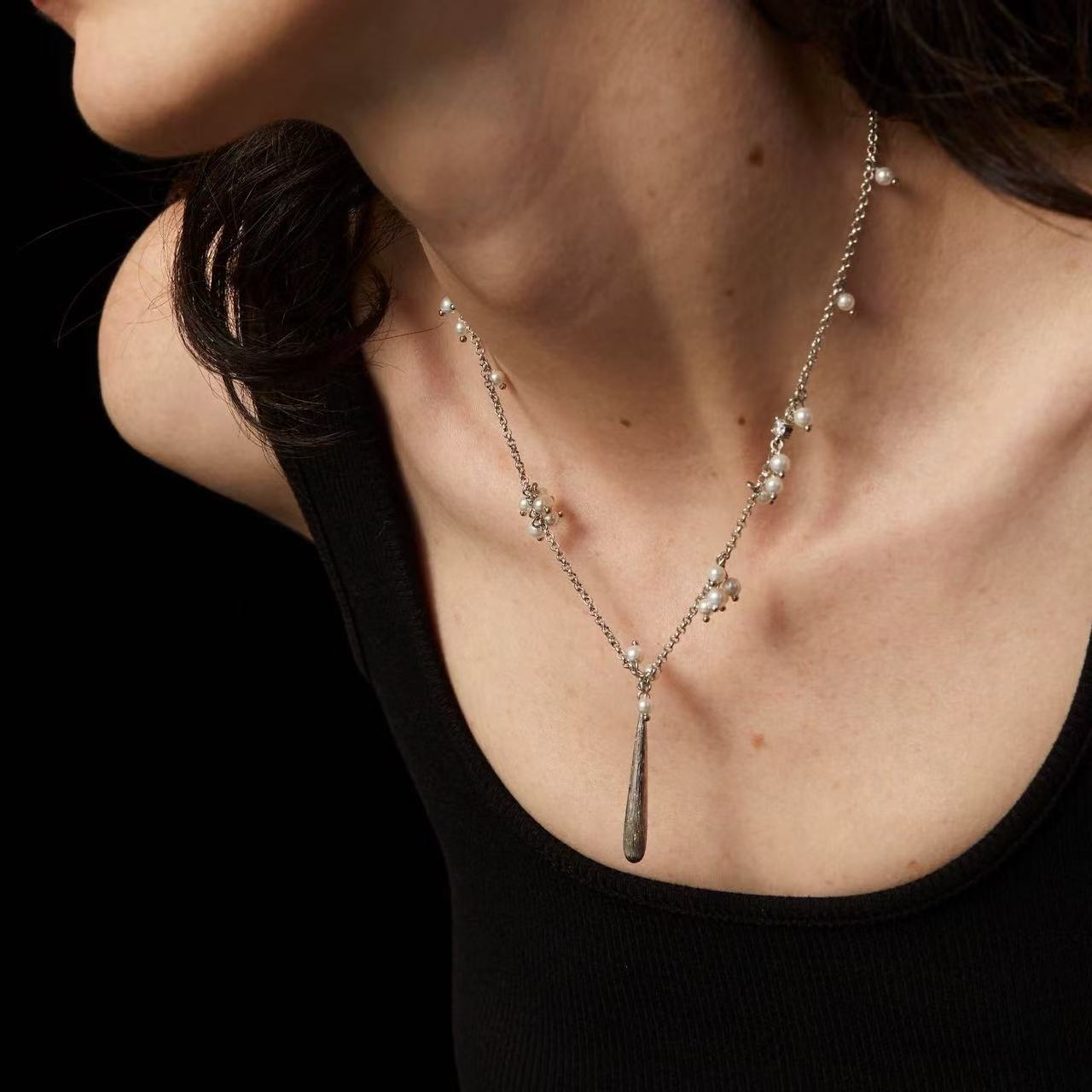 silver brushed water drop choker