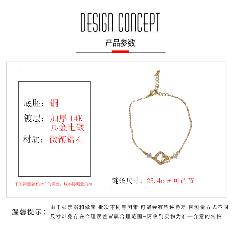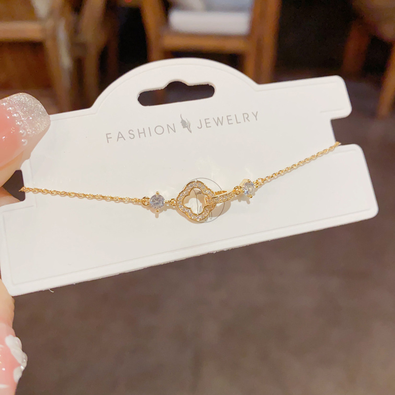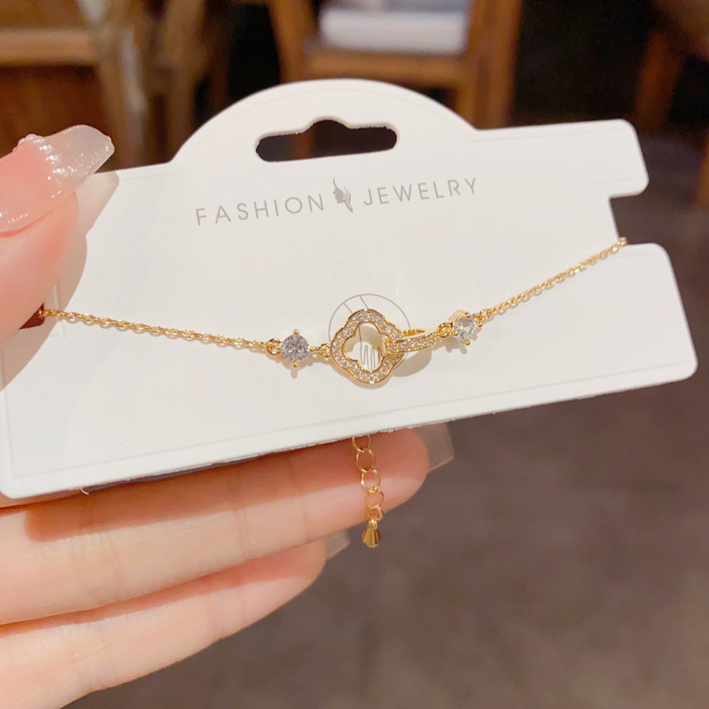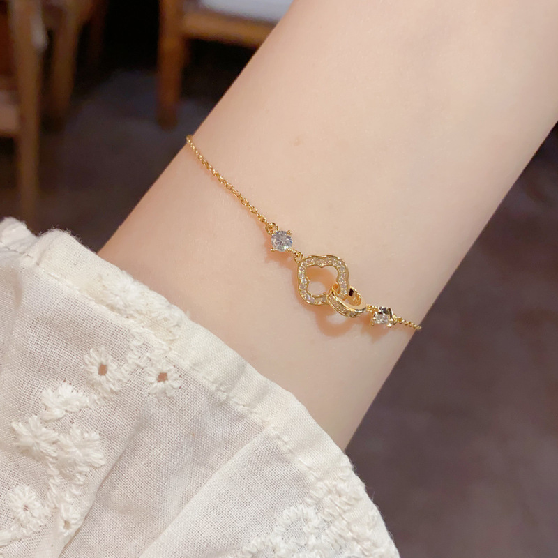 golden-zircon four-leaf flower link bracelet (thickened true gold plating)