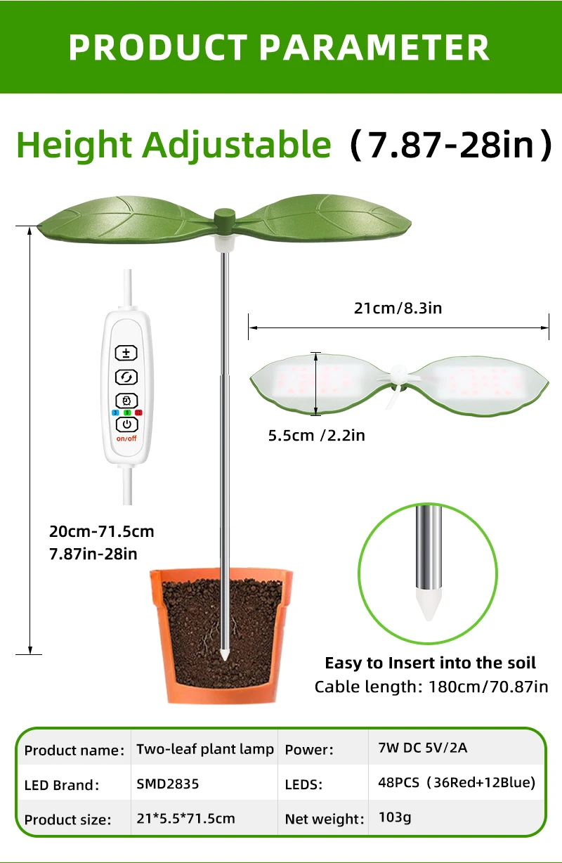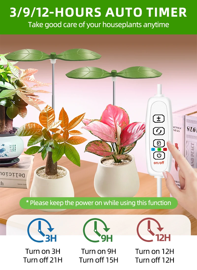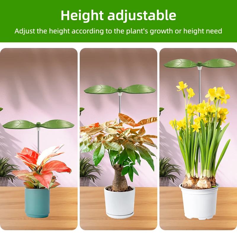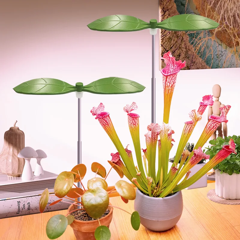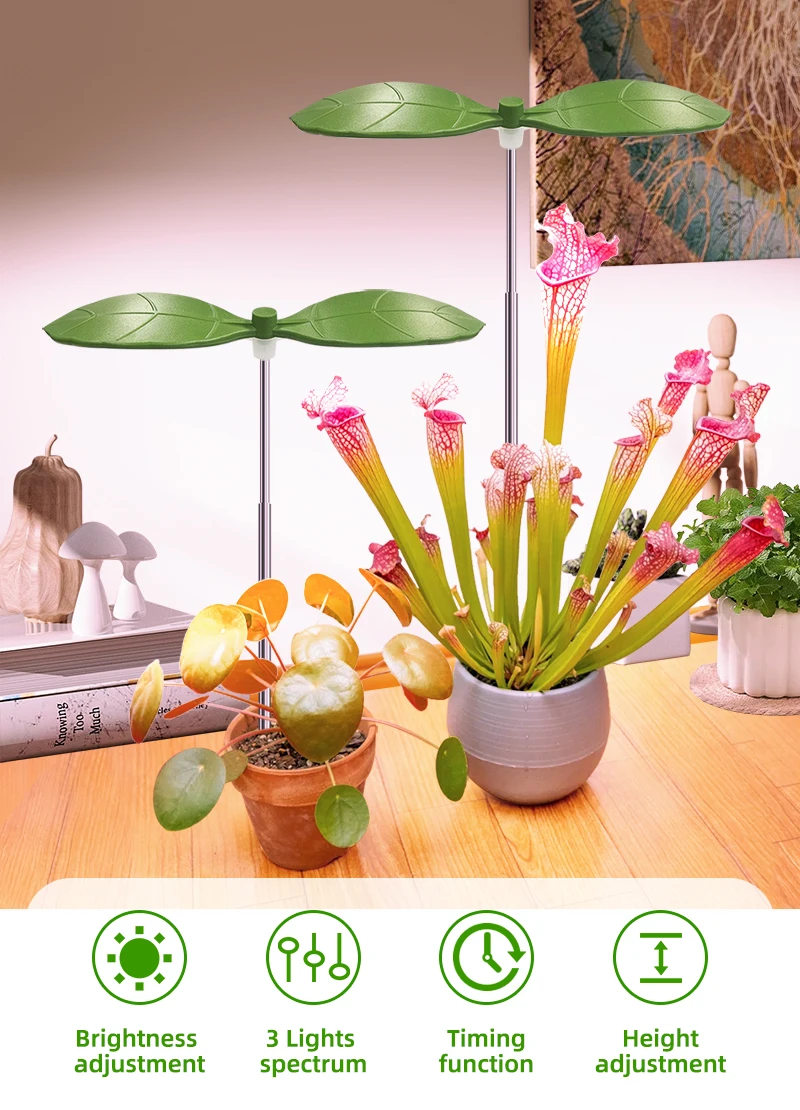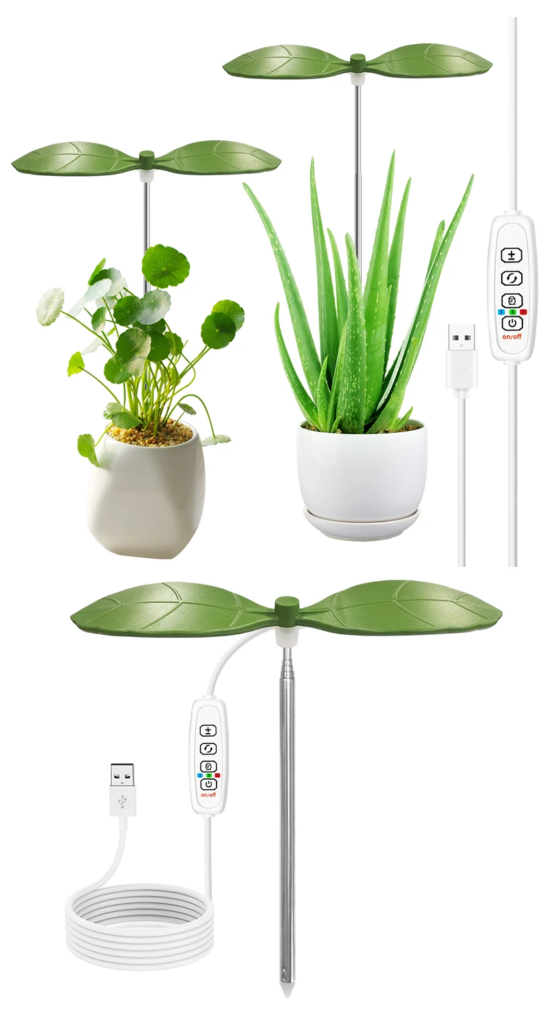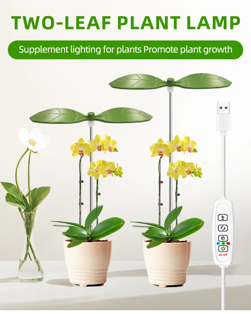 Two Leaf Shape Mini Usb LED Plant Grow Light for Indoor Plants,3/9/12H Timer Growing Potted Plant Lights