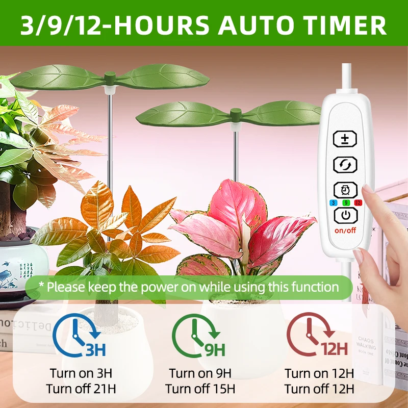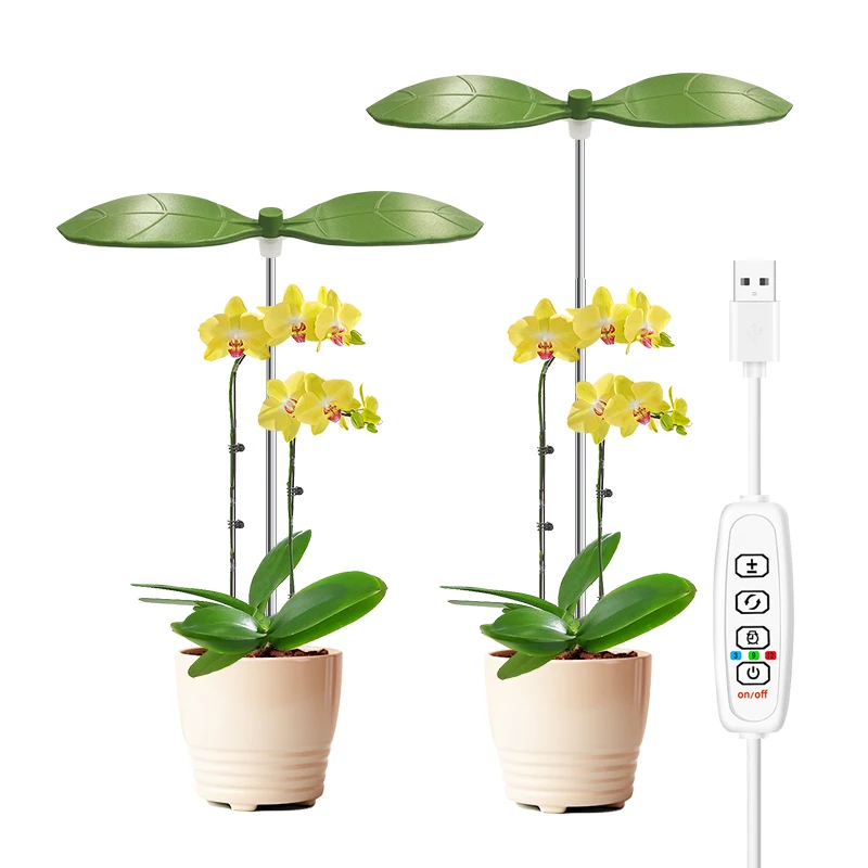 Two Leaf Shape Mini Usb LED Plant Grow Light for Indoor Plants,10 Dimmable,3/9/12H Timer Growing Potted Plant Lights