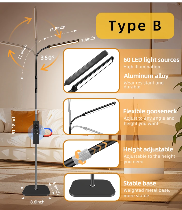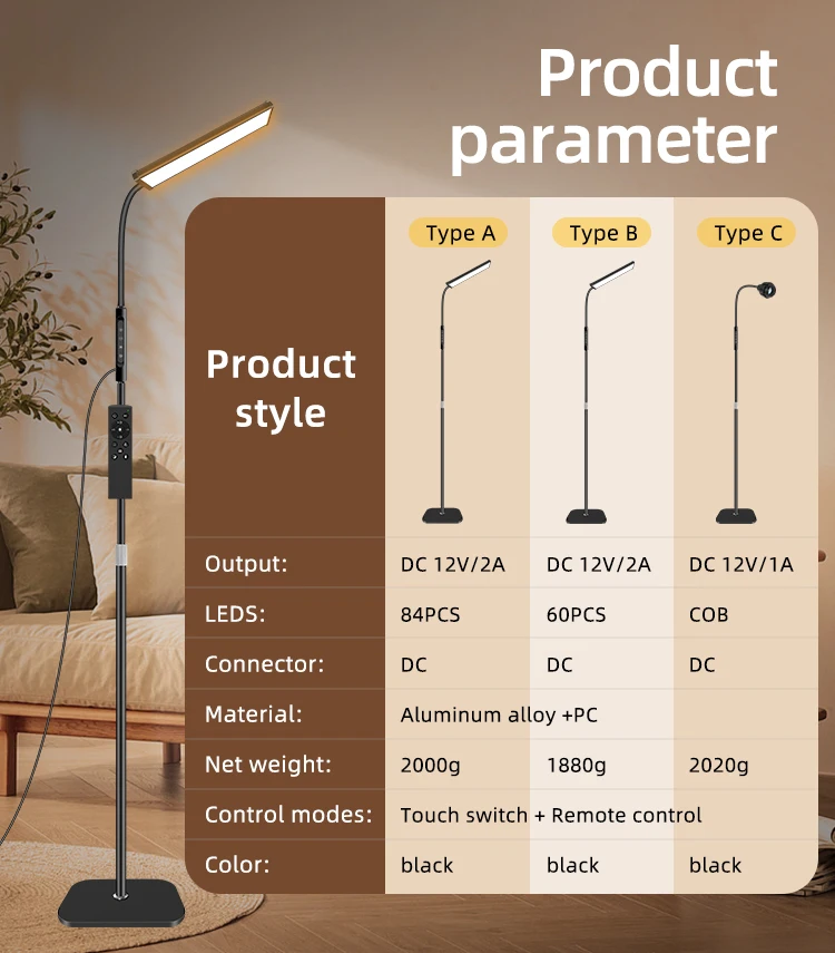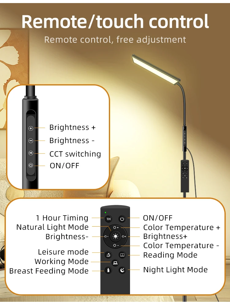 Home 15W Intelligent Remote Control Floor Standing Lamp Lighting LED Floor Lamp Five Mode Light LED Dimmer Light Floor Lamps