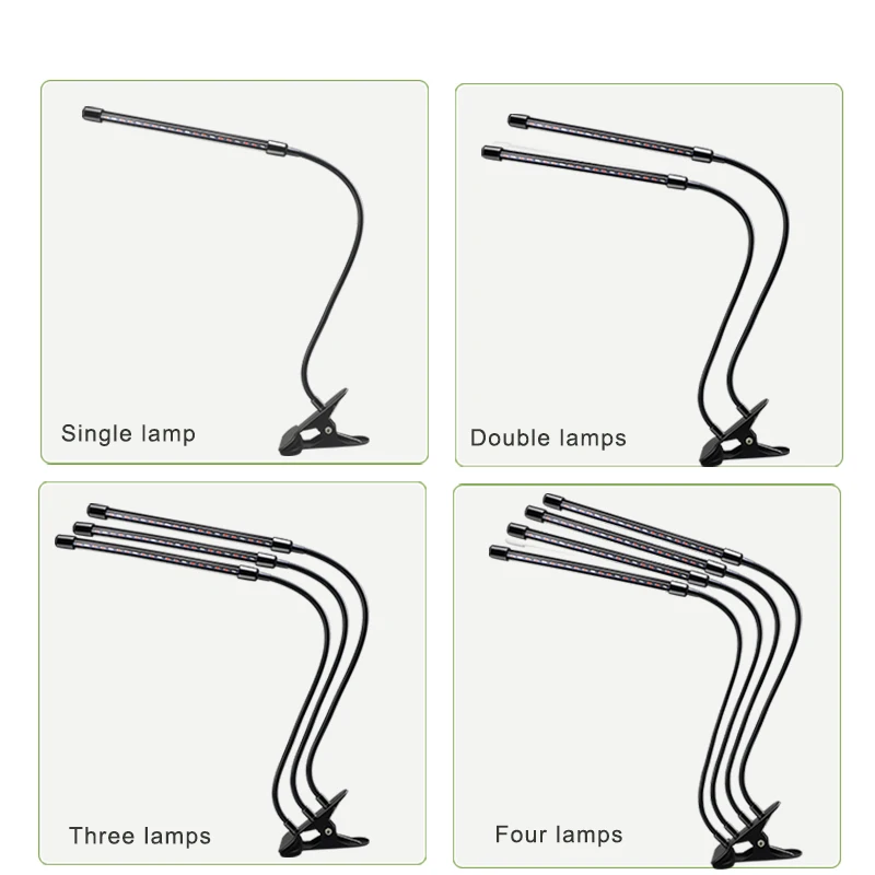 Our company specializes in manufacturing led grow plant light with clip. Our product includes one head,two heads,three heads, four heads and five heads. The basic spectrum is Red+Blue ,also can be customized to be other colors such as pink,yellow,etc. Please contact us for any requirements.