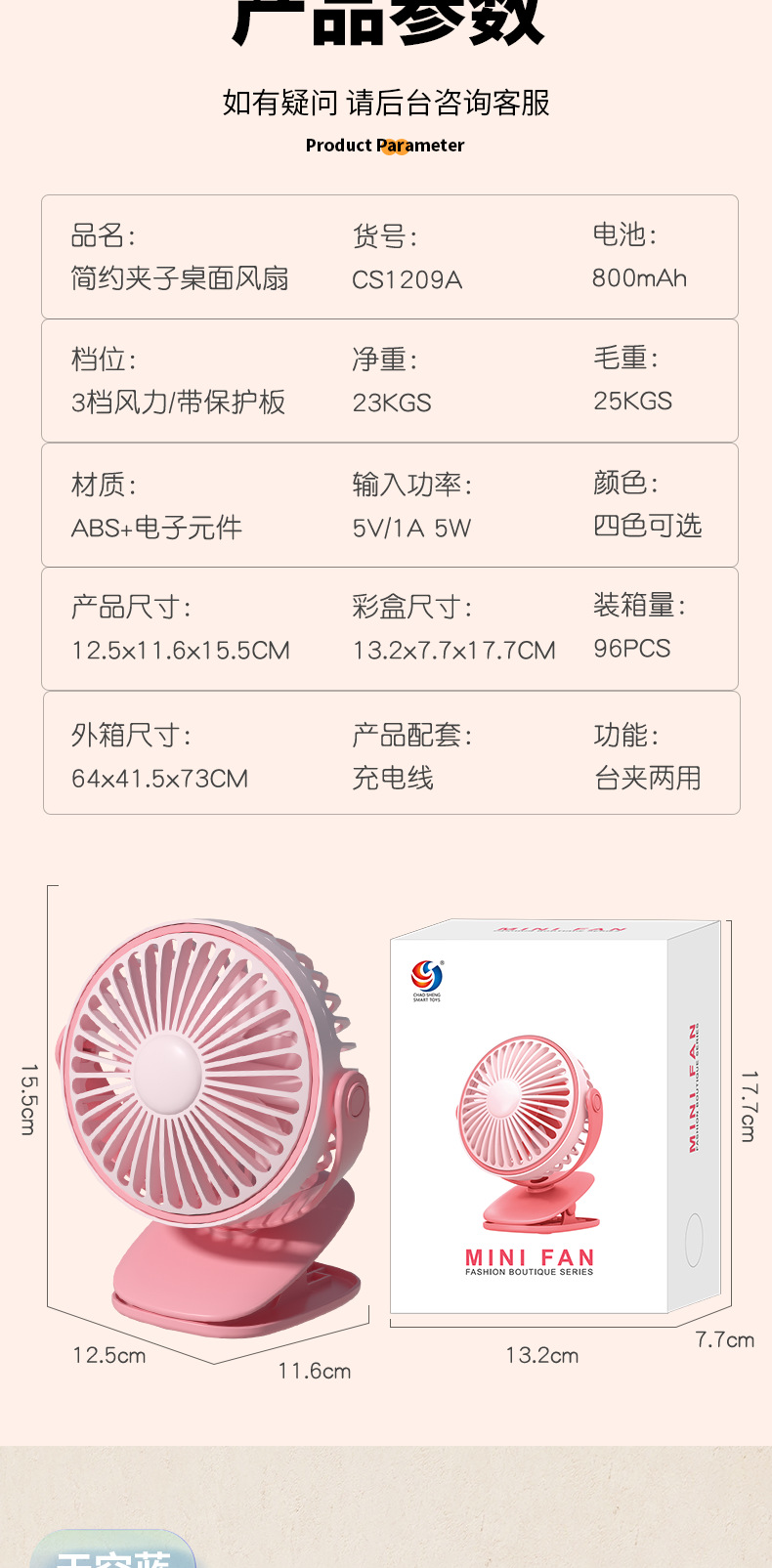 pink clip fan [3 gear] cs1209a
