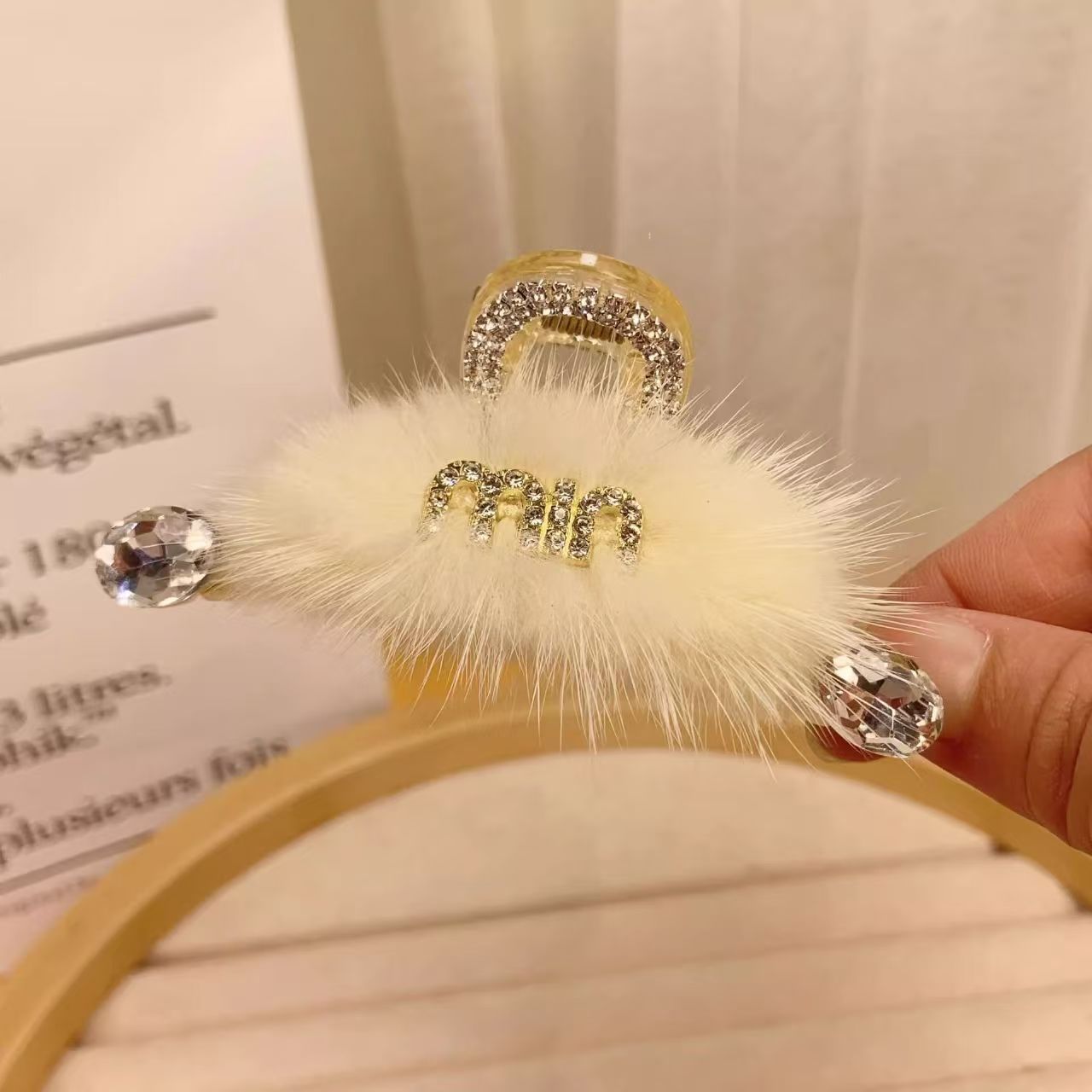 3# white bow pearl fur ball