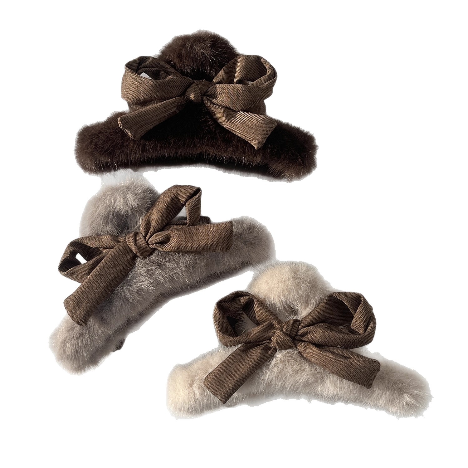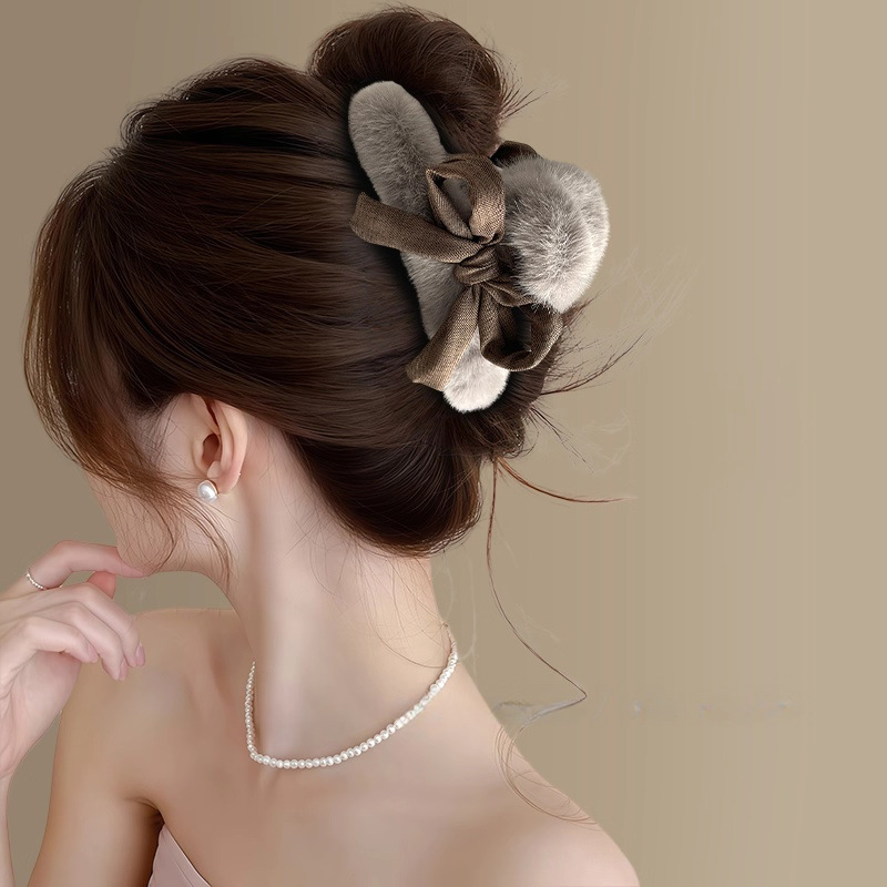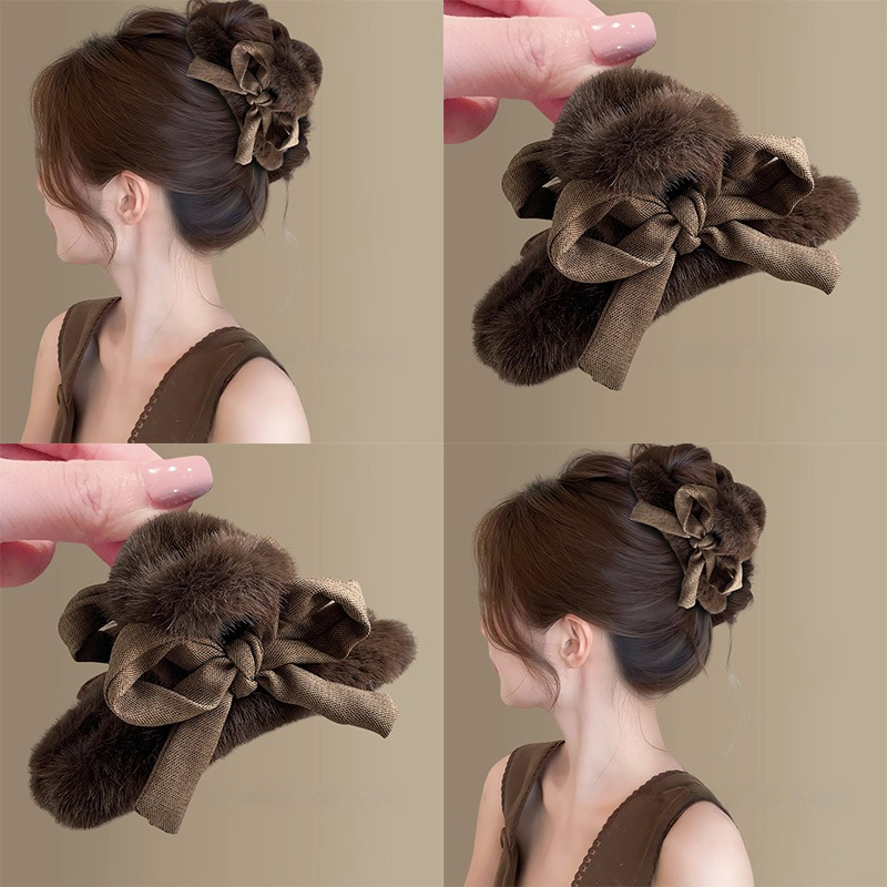 1# kagi plaid plush bow claw clip