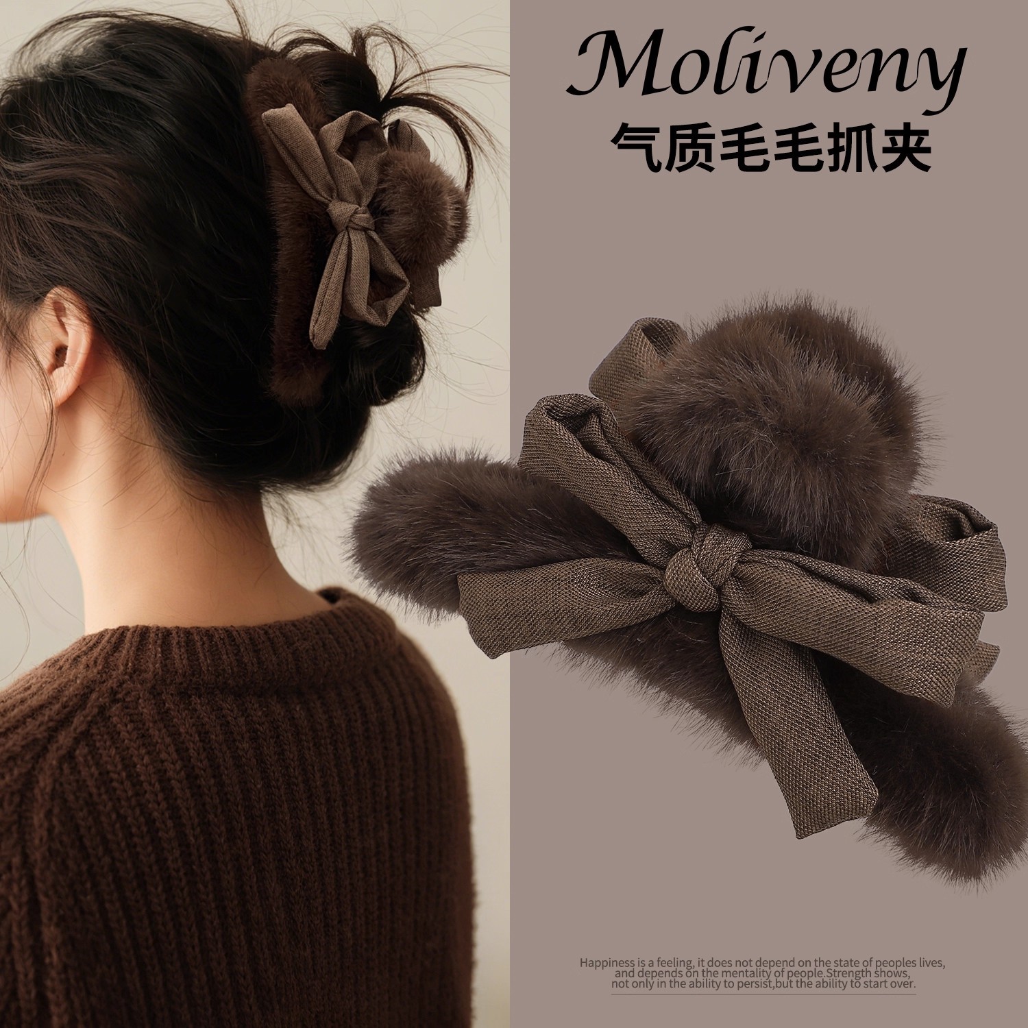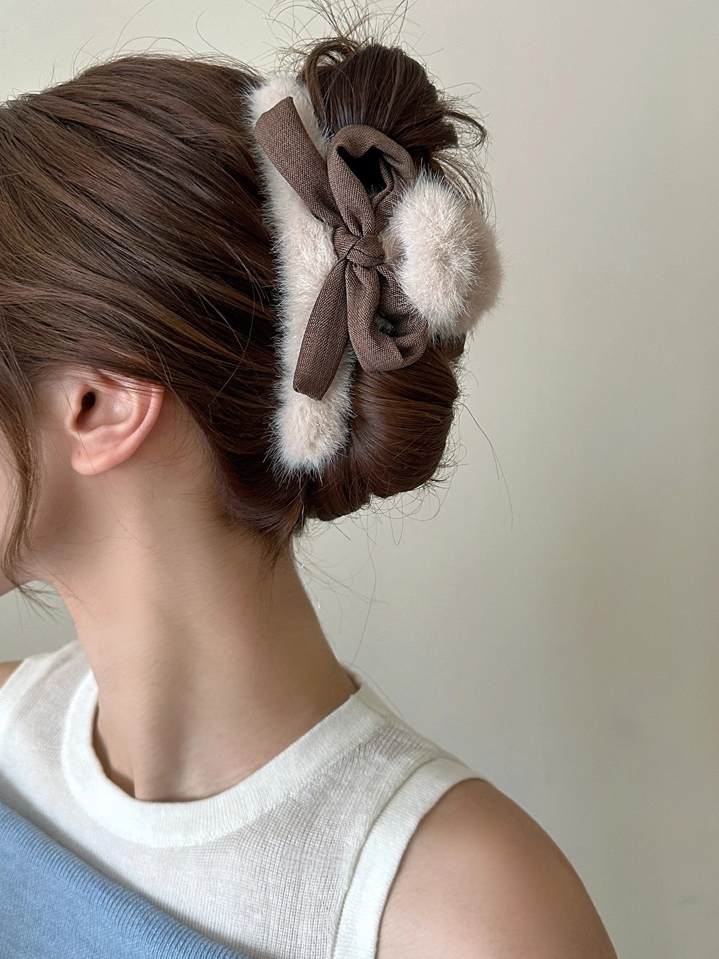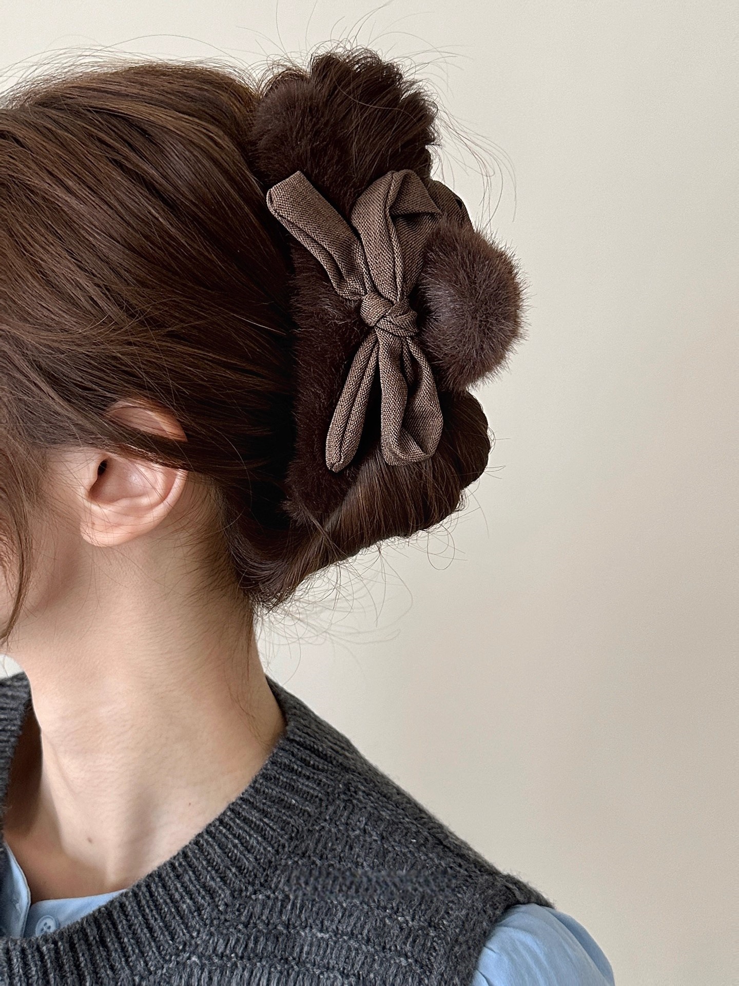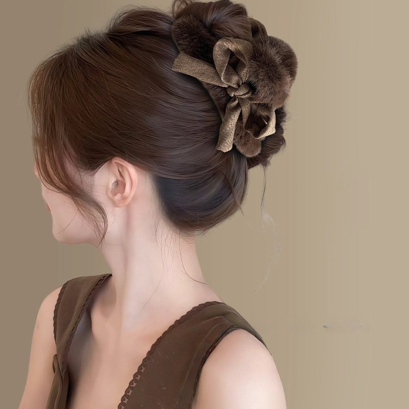 4# coffee color bow pearl fur ball