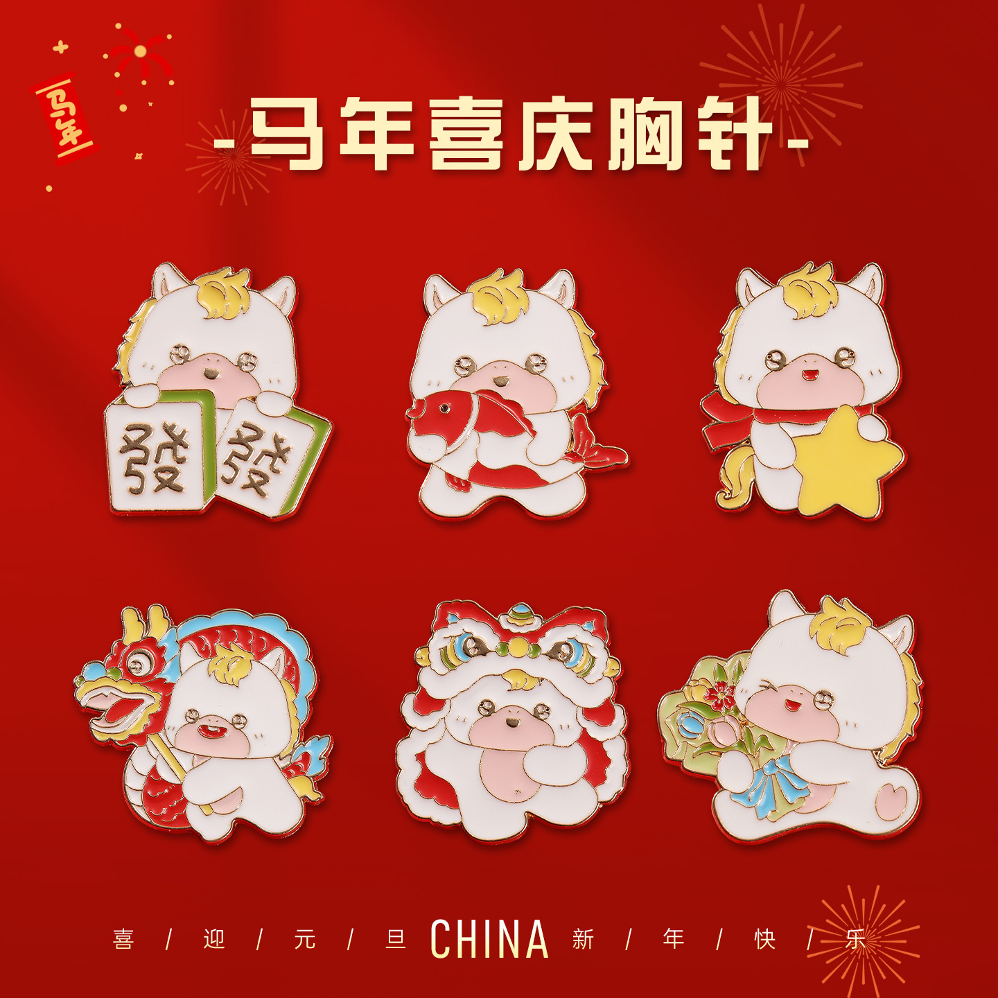 9# happy new year brooch