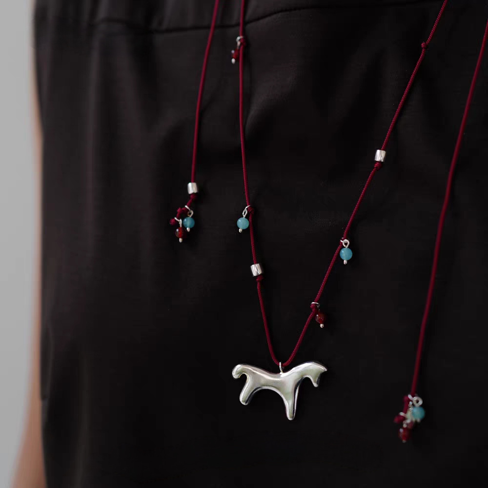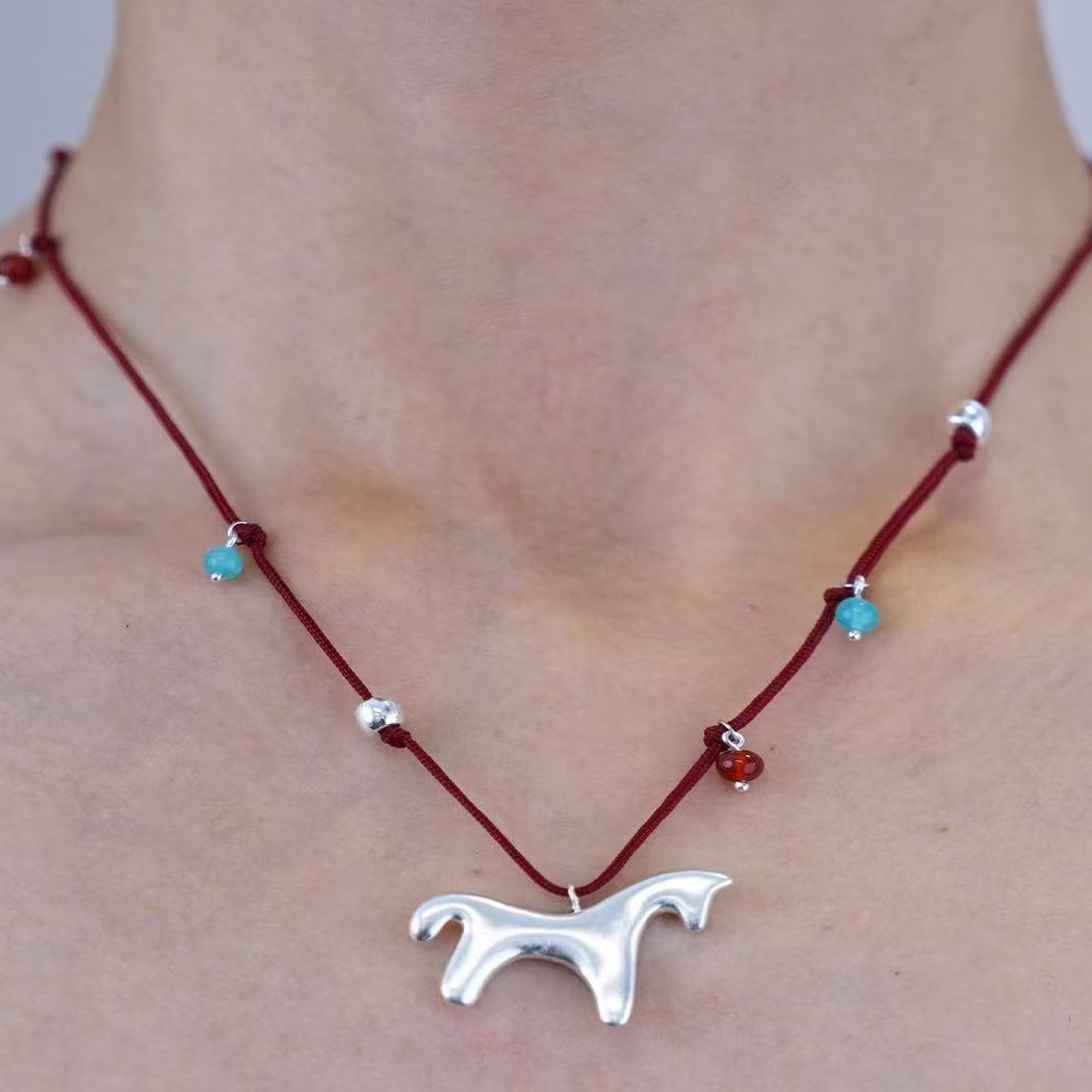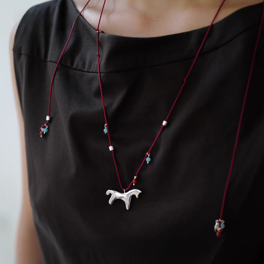 silver pony pendant necklace